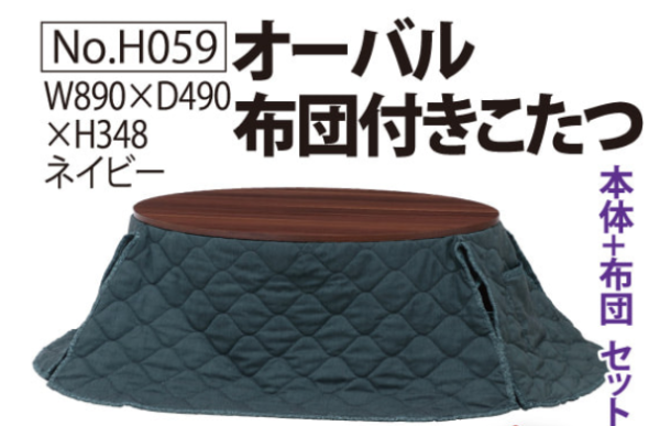 こちらは楕円形のこたつと布団がセットになった商品です。