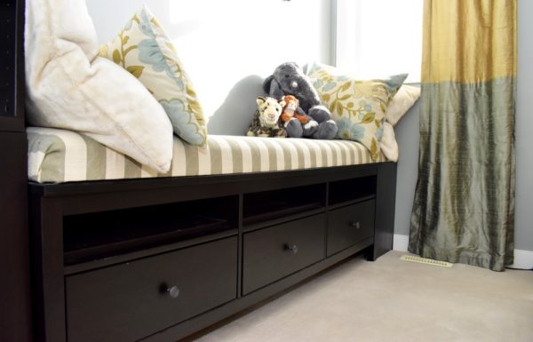 前にスペースが必要な引き出しとは異なり、狭い場所でベッドと収納を叶えるのに最適です。