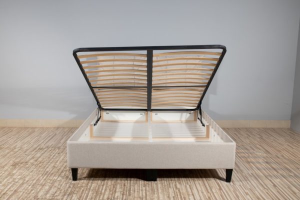 床板が収納スペースのフタの役割を果たし、手動で開閉します。