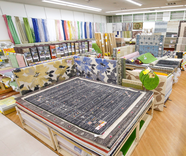 お部屋の雰囲気を変えたいならカーペットとカーテン!ご存知ですか?カーペットとカーテンはお部屋のイメージを変えるだけでなく温度調整や防音効果、カラー効果など色々な役目があります。当店ではお持ち帰り出来るものを多く取り揃えております!
