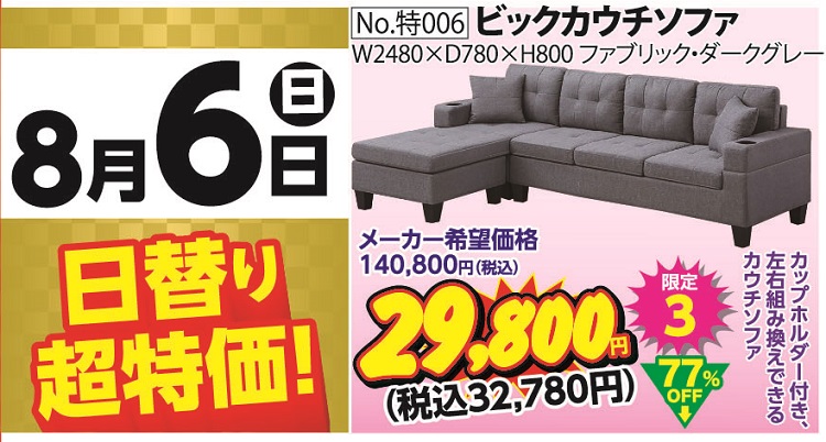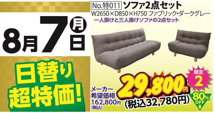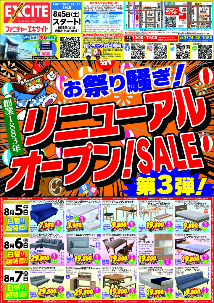 ファニチャーエキサイト!リニューアルオープンSALE!第3弾!(8月5日(土) あさ10時スタート!)