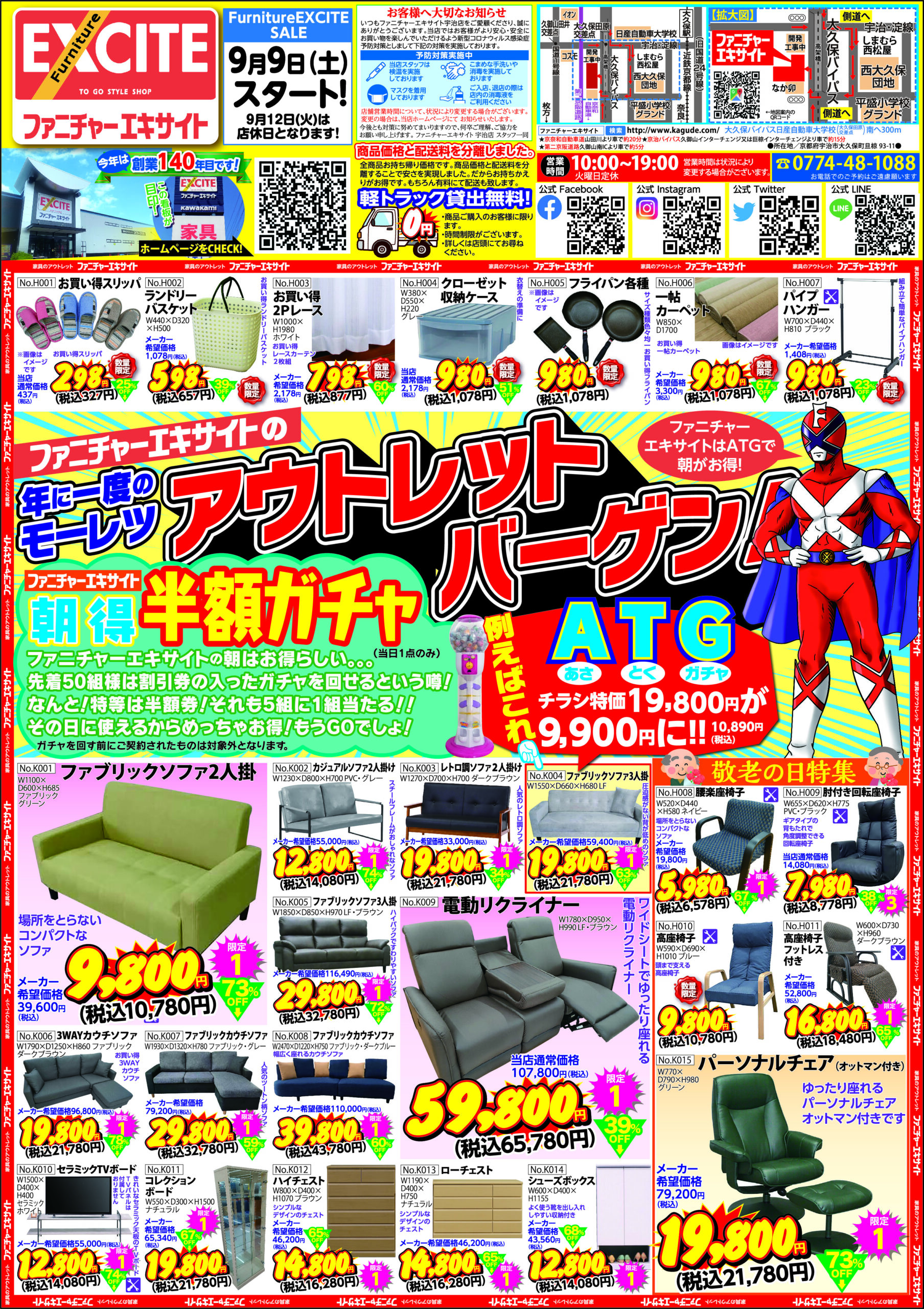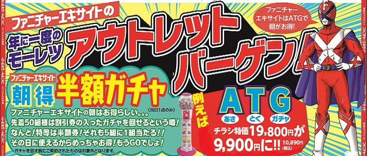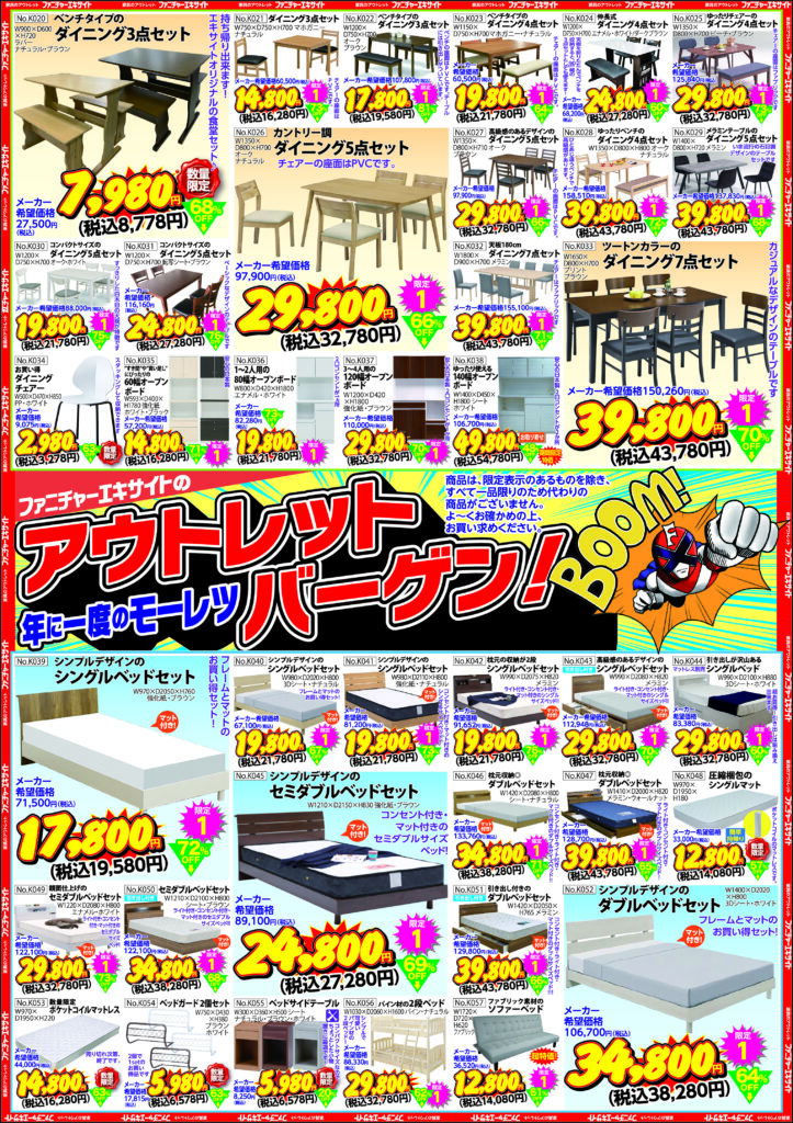ファニチャーエキサイト!年に一度のモーレツアウトレットバーゲン!第2弾!(9月9日(土) あさ10時スタート!)