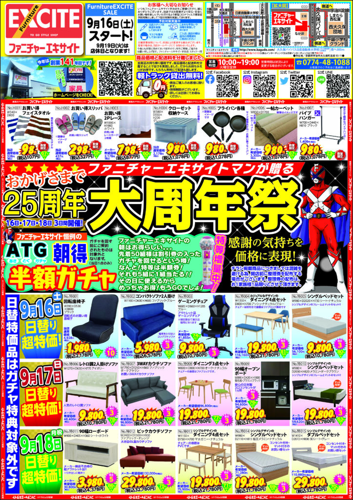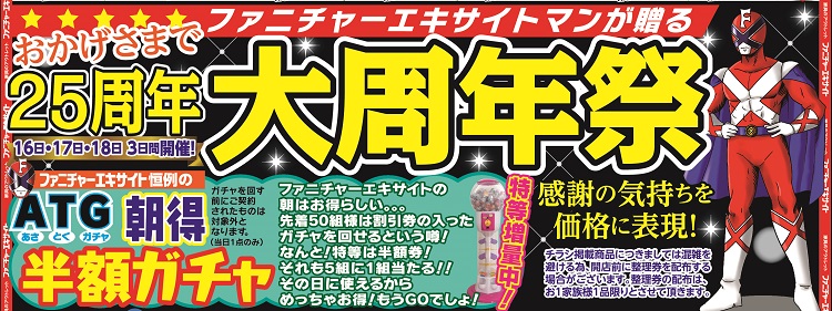 ファニチャーエキサイト!おかげさまで25周年『大周年祭!』(9月16日(土) あさ10時スタート!)