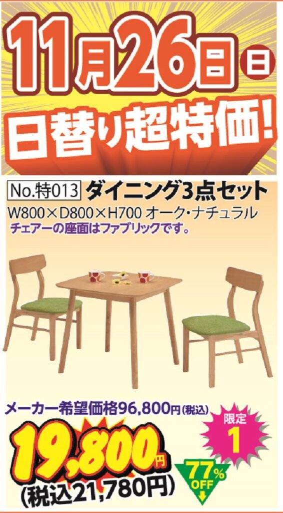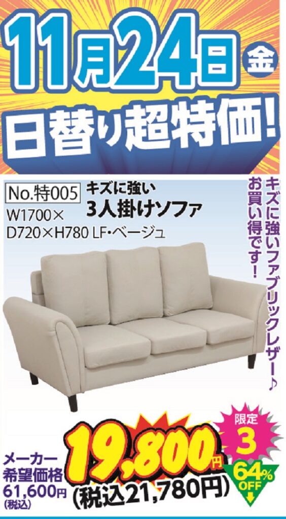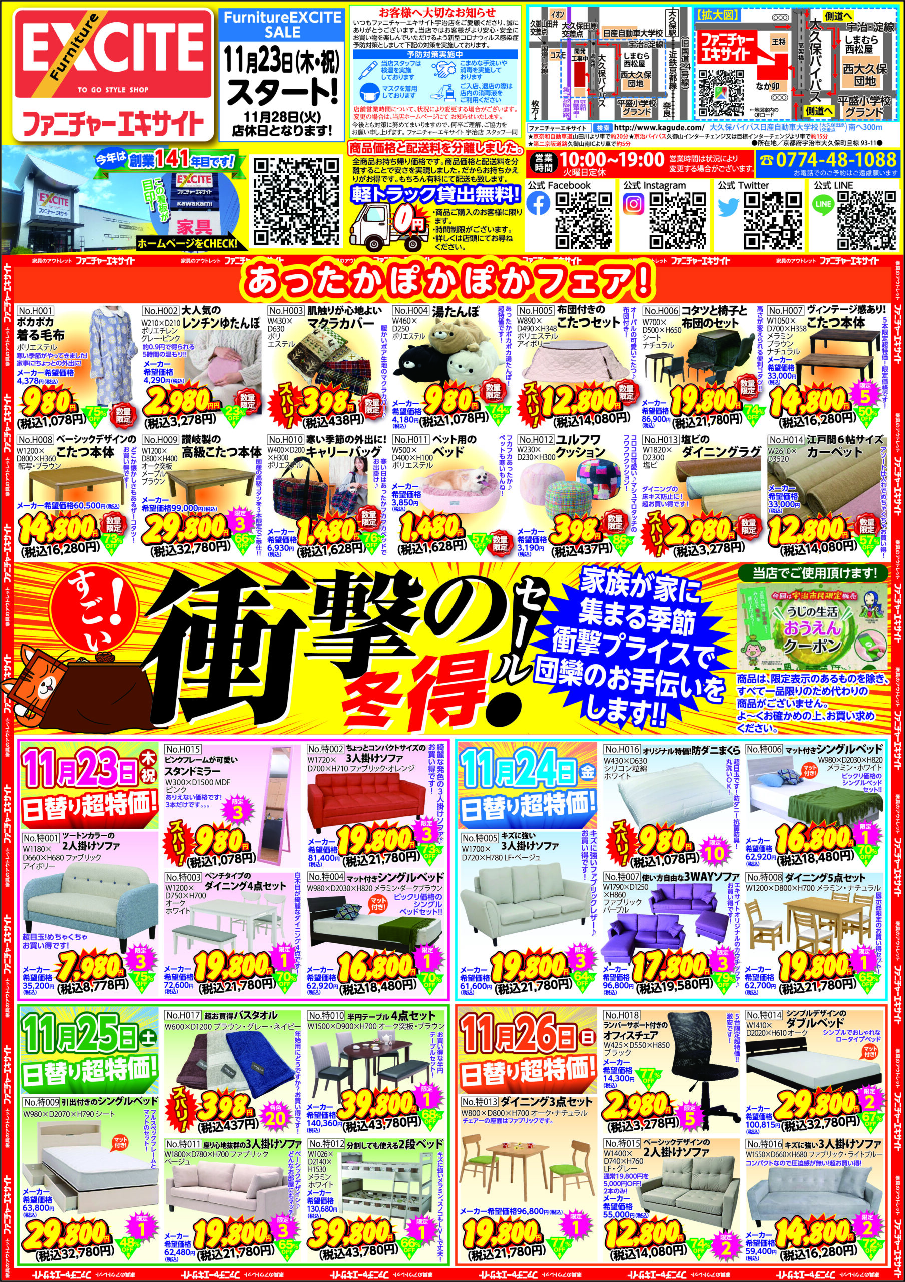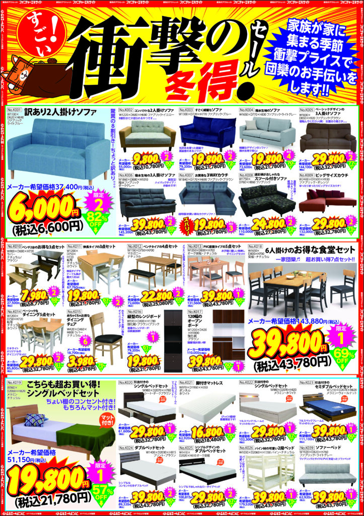 ファニチャーエキサイト!衝撃の冬得セール!(11月23日(木祝) あさ10時スタート!)