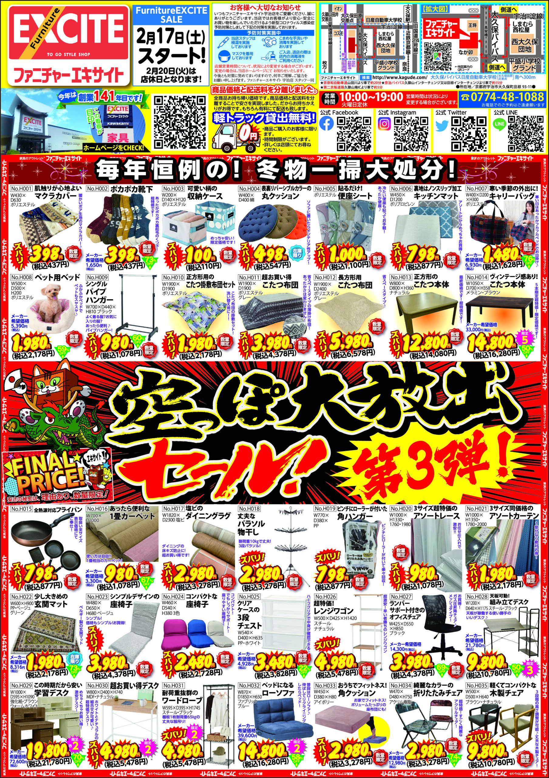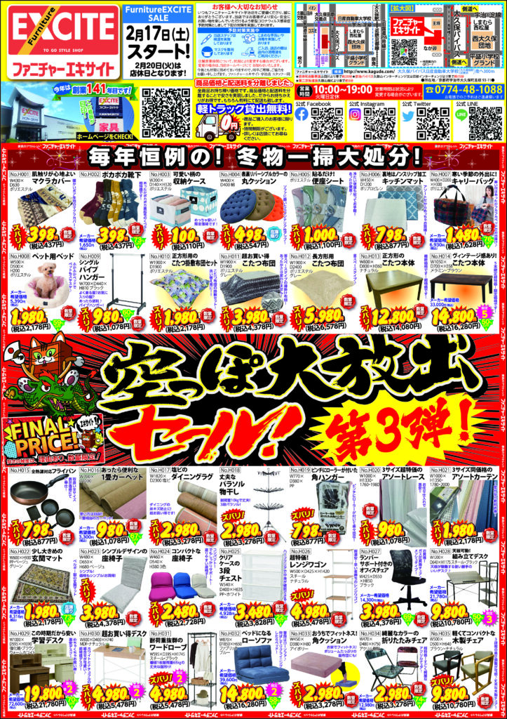 ファニチャーエキサイト!空っぽ大放出セール!第3弾!(2月17日(土)あさ10時スタート!)