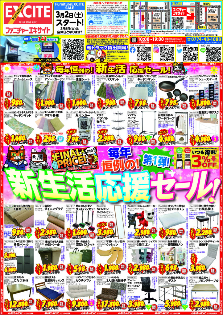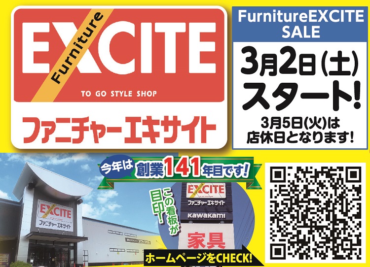 ファニチャーエキサイト!新生活応援セール!(3月2日(土)あさ10時スタート!)