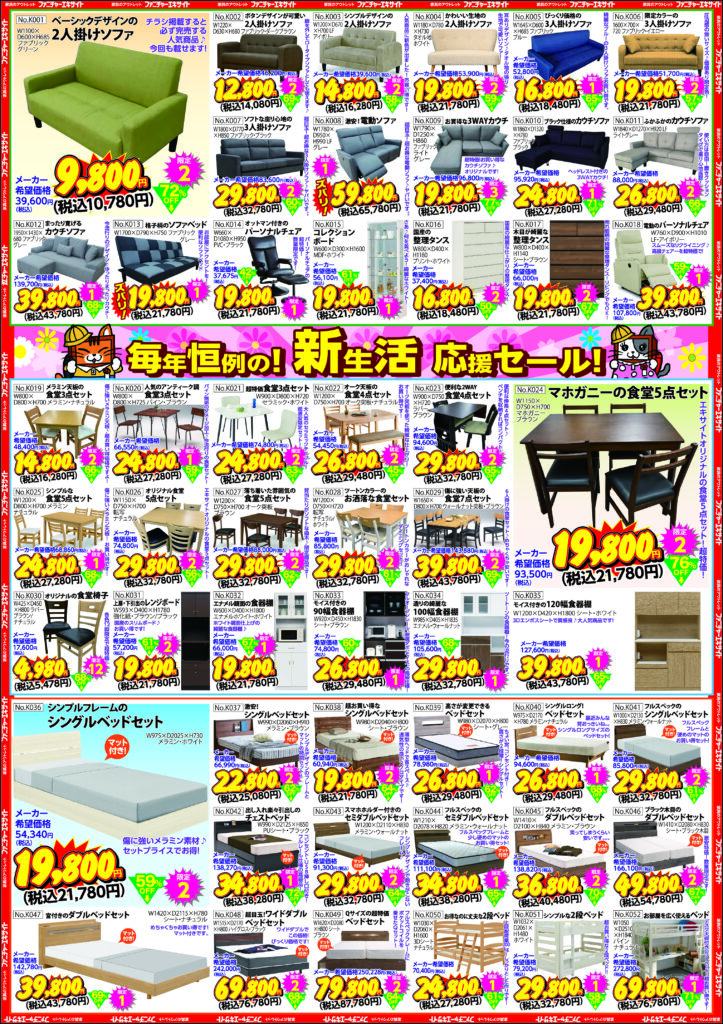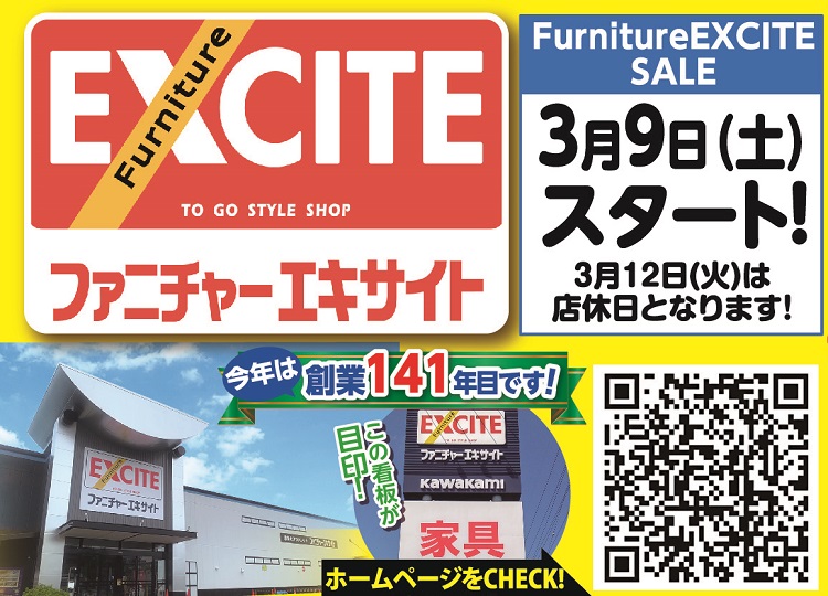ファニチャーエキサイト!新生活応援セール!(3月9日(土)あさ10時スタート!)