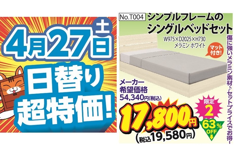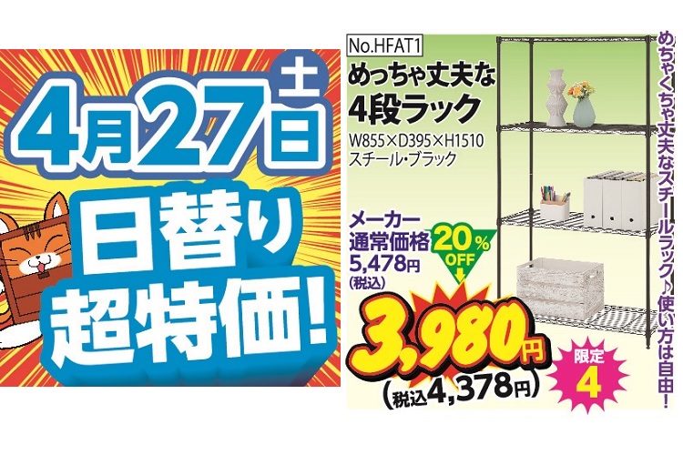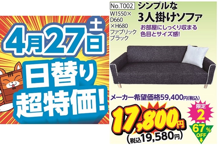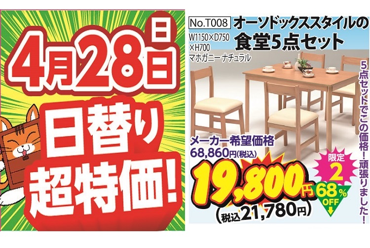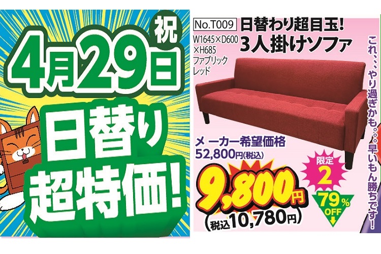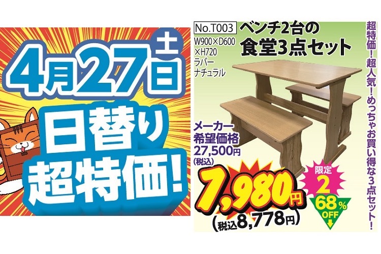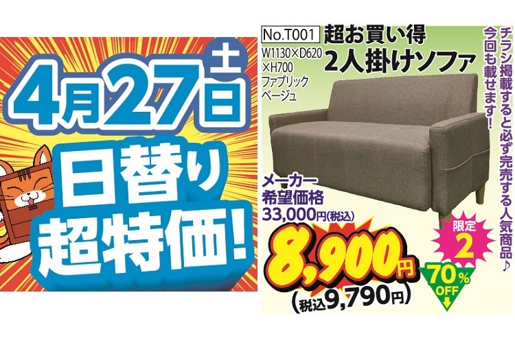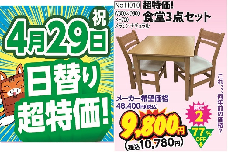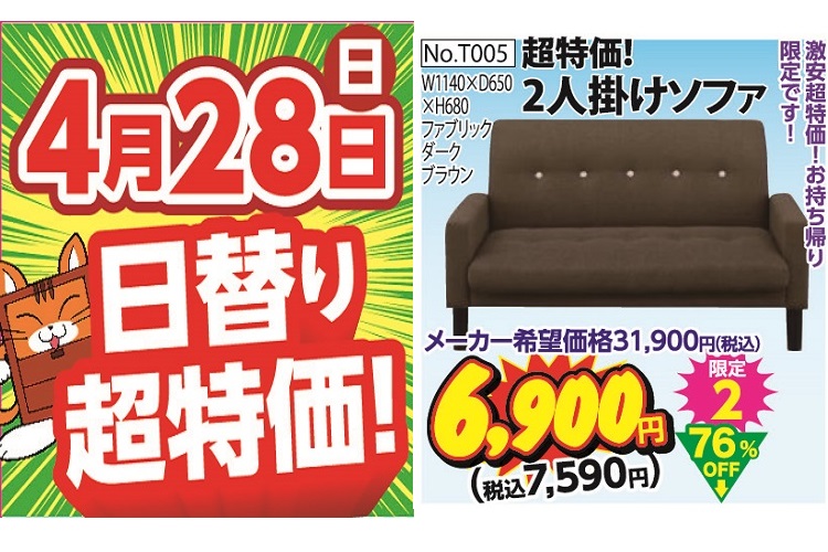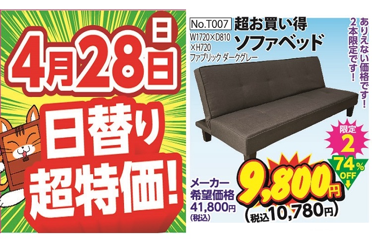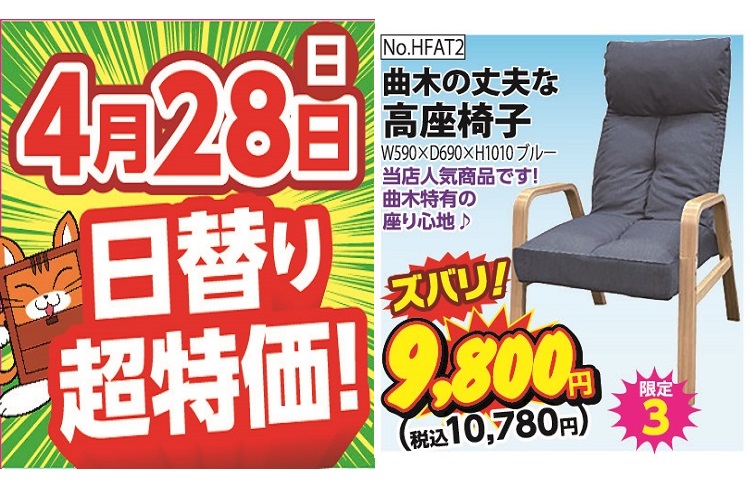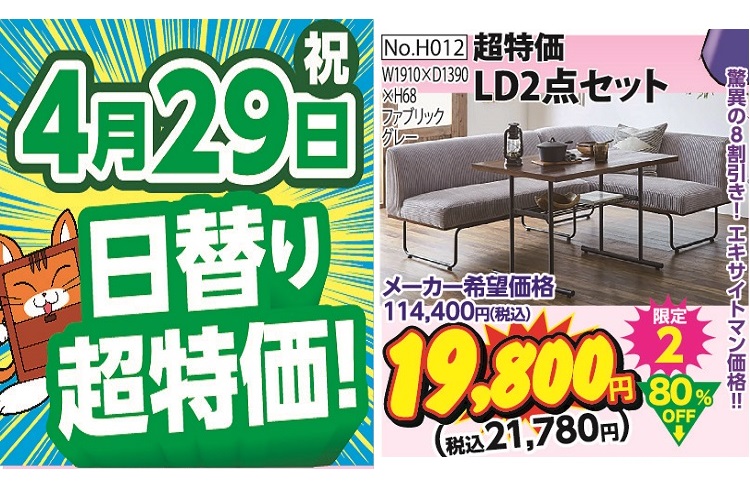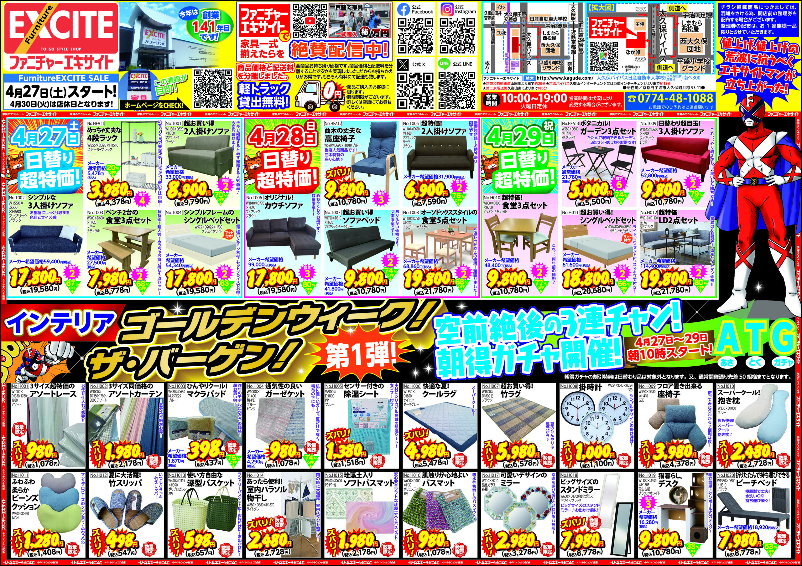 ファニチャーエキサイト!ゴールデンウィーク!ザ・バーゲン!(4月27日(土)あさ10時スタート!)