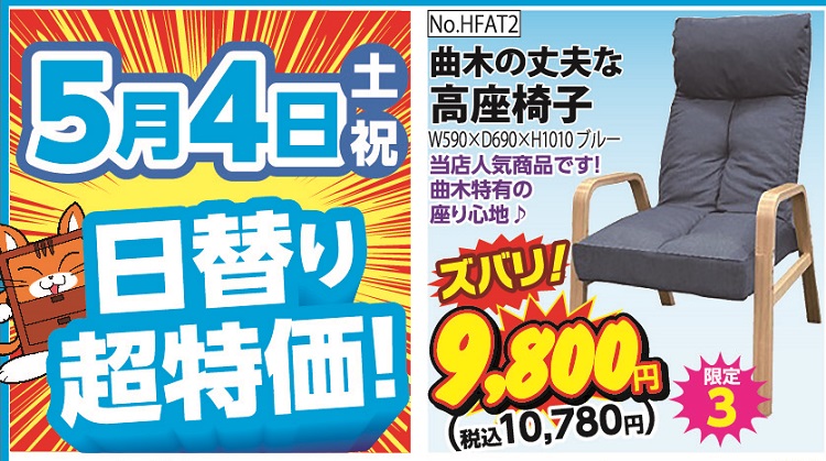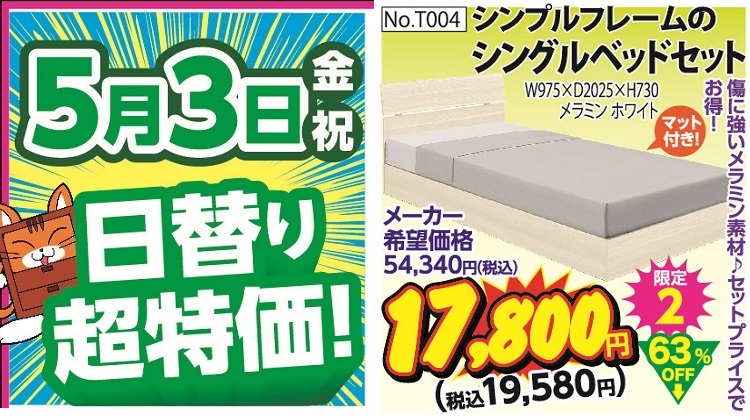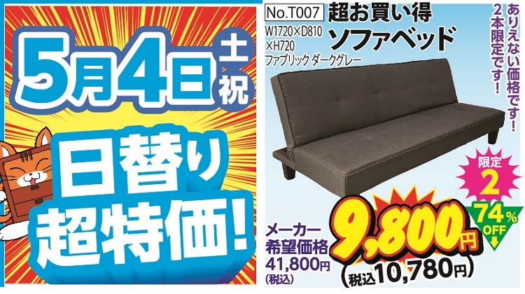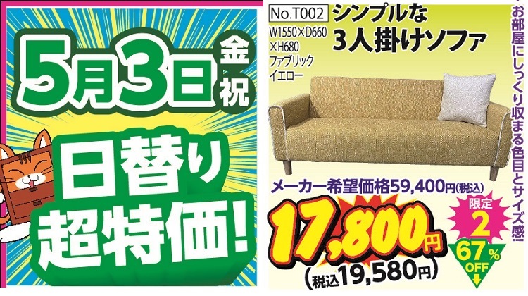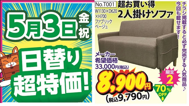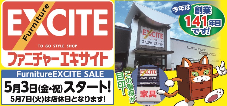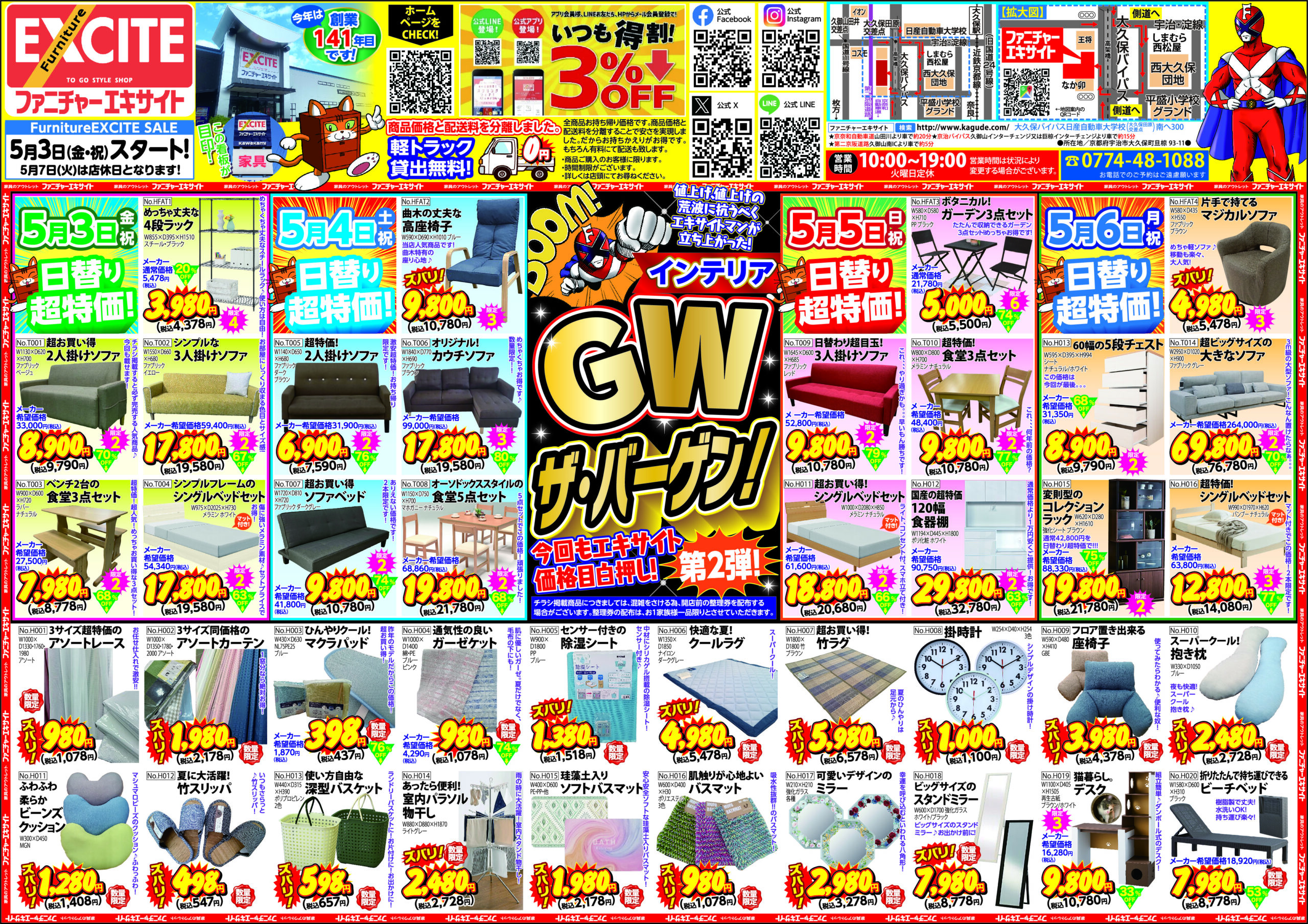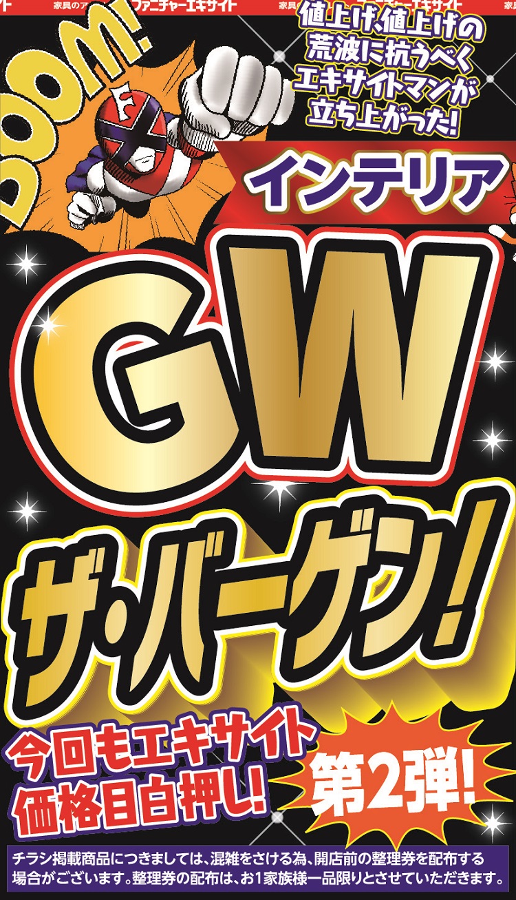 ファニチャーエキサイト!ゴールデンウィーク!ザ・バーゲン!第2弾!(5月3日(金祝)あさ10時スタート!)