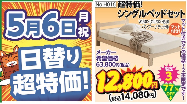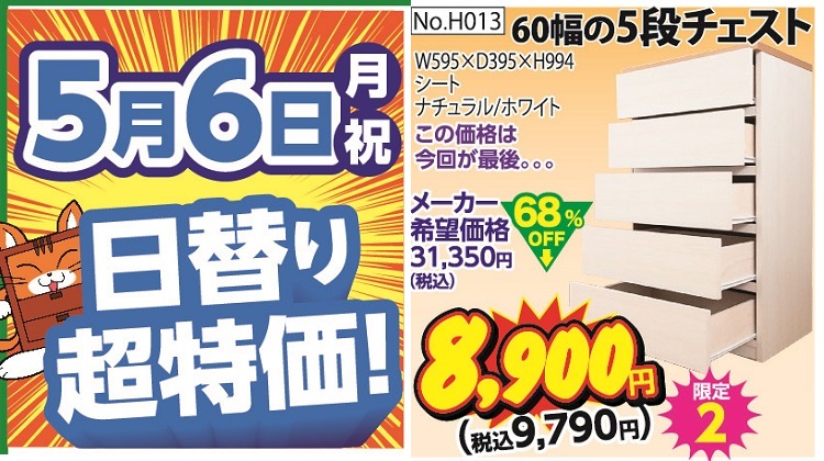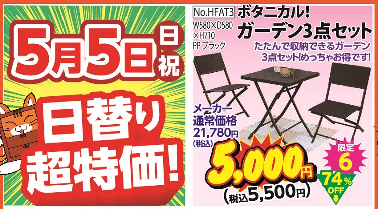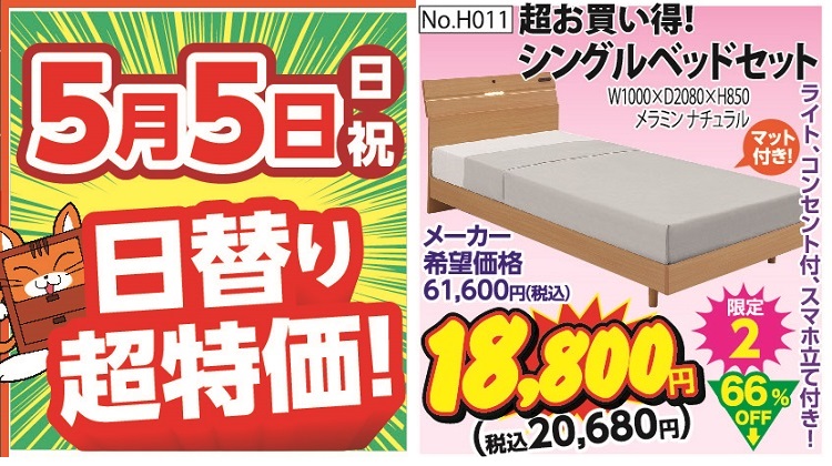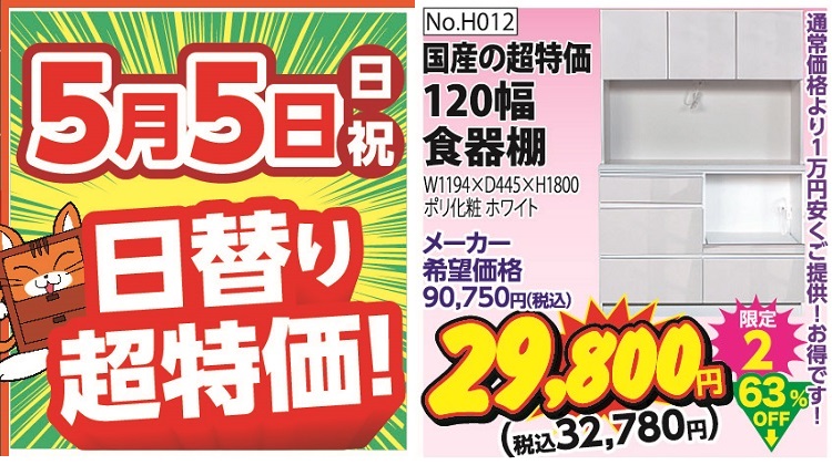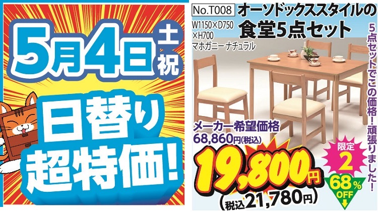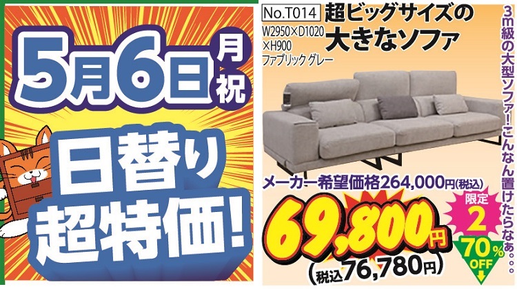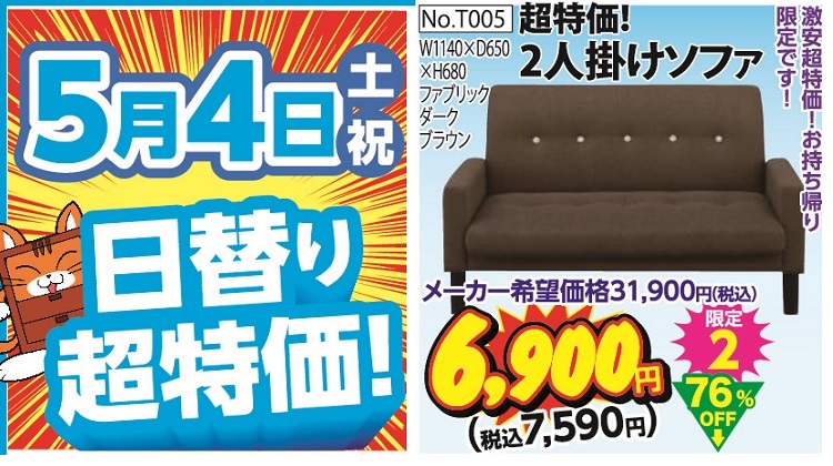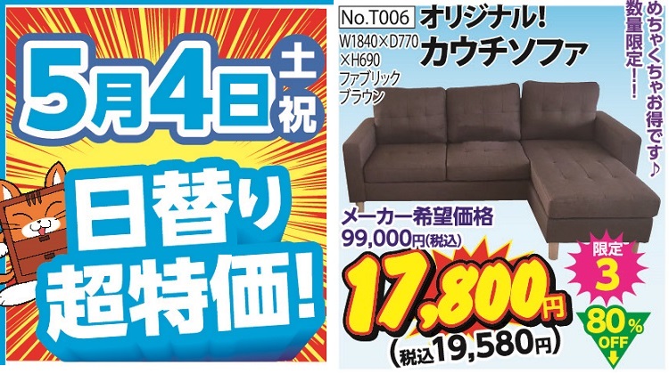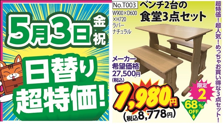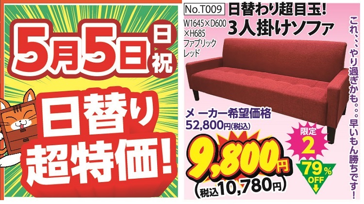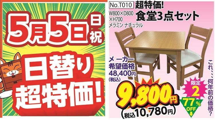 ファニチャーエキサイト!ゴールデンウィーク!ザ・バーゲン!第2弾!(5月3日(金祝)あさ10時スタート!)