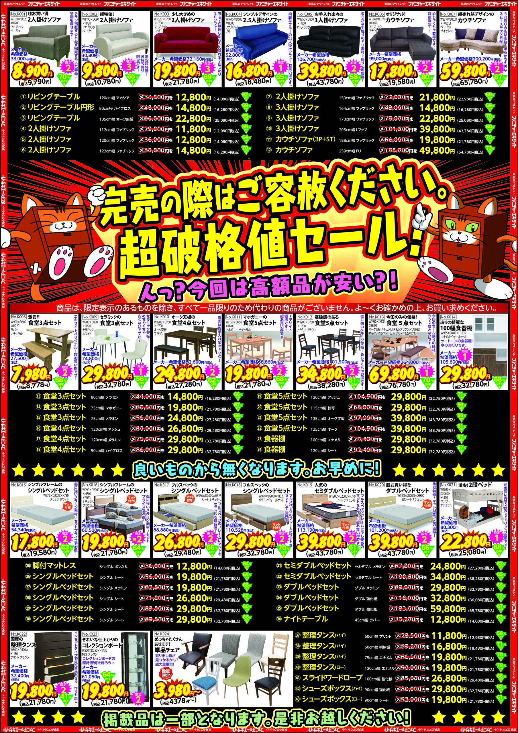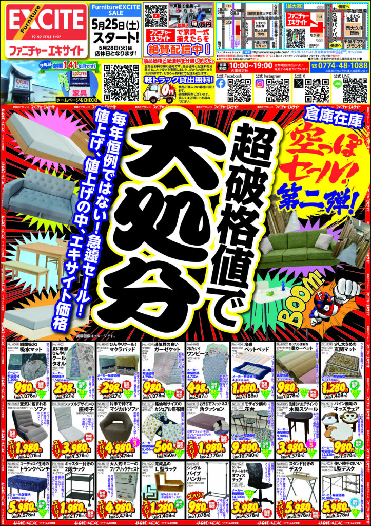 ファニチャーエキサイトの超破格値で!大処分!空っぽセール!第2弾!(2024年5月25日(土)あさ10時スタート!)