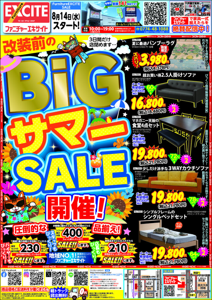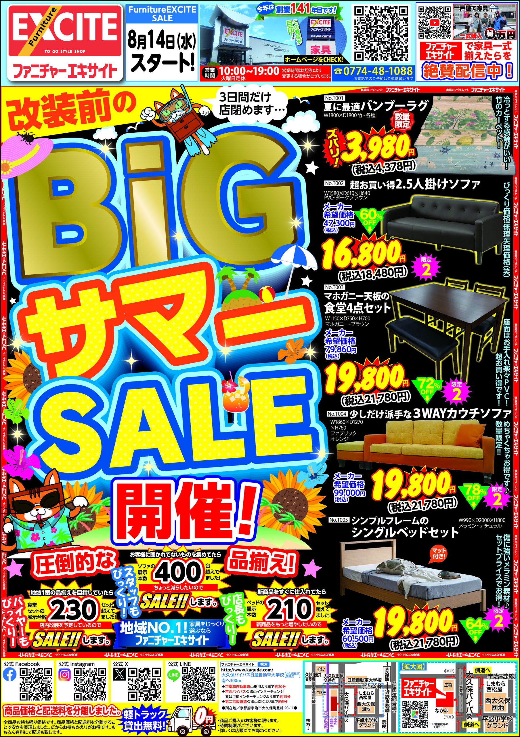 ファニチャーエキサイト!BIGサマーSALE!開催です!(2024年8月14日(水)あさ10時スタート!)