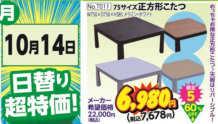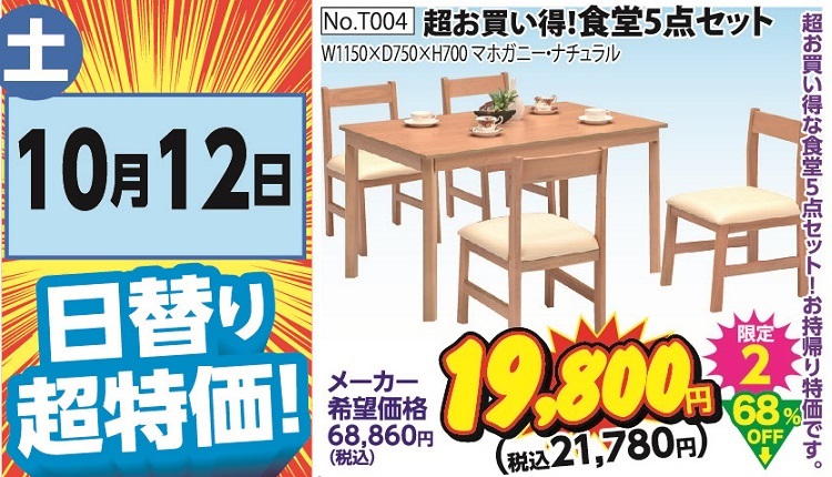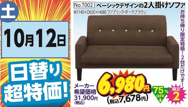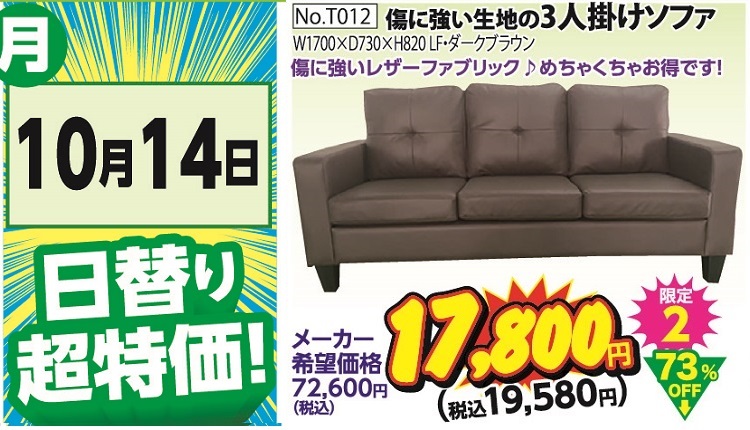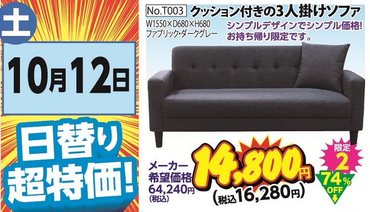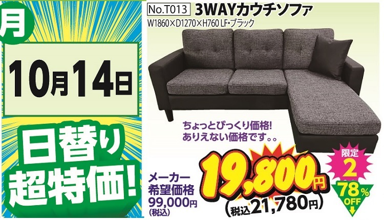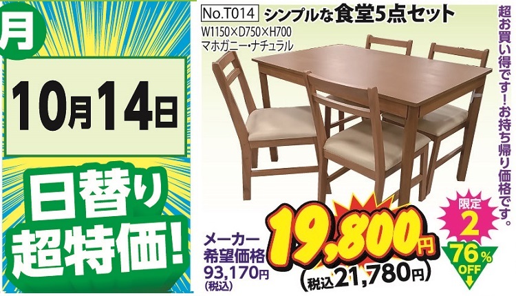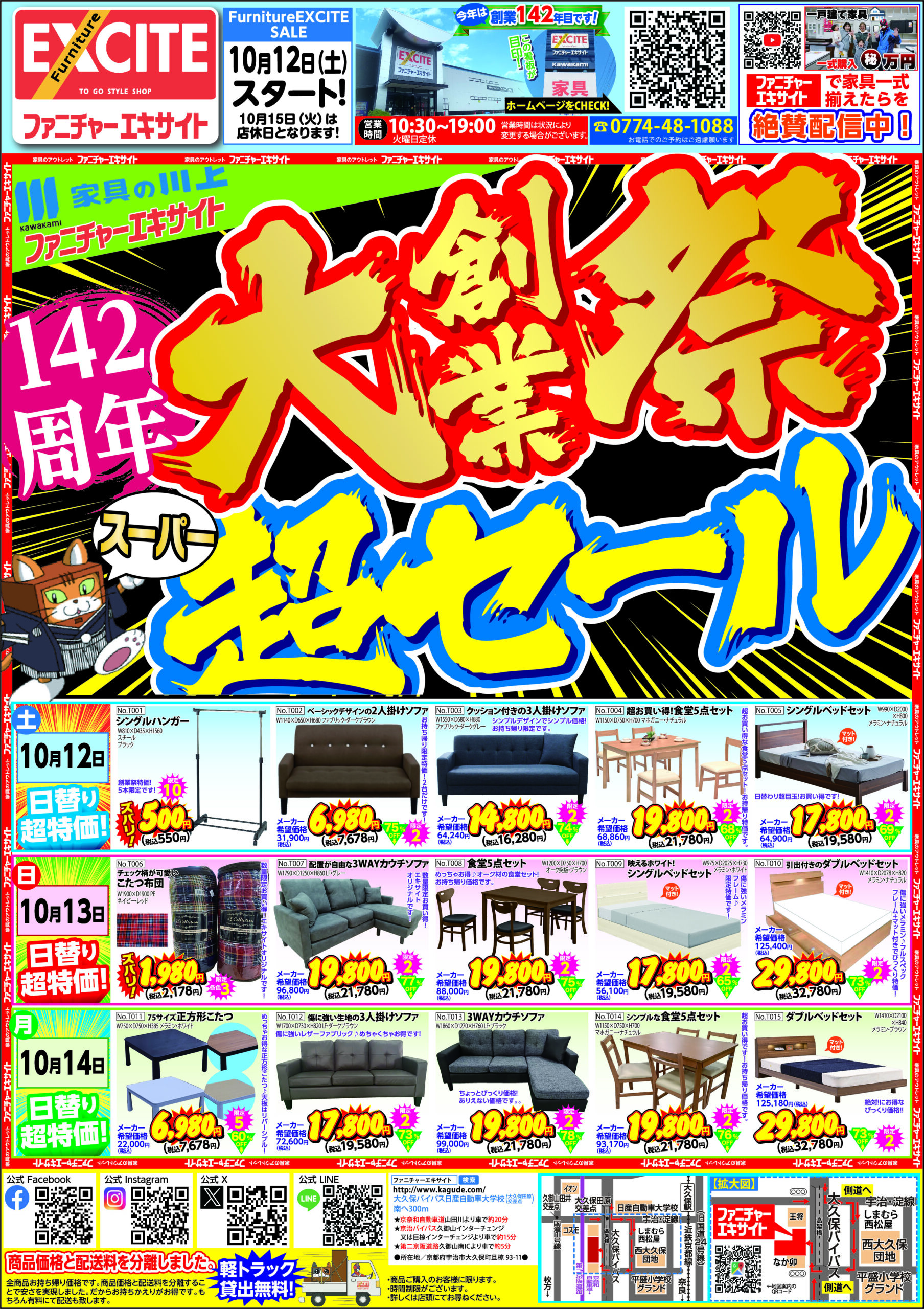 2024.10.07 ファニチャーエキサイト!創業142周年!大創業祭!超セール!(2024年10月12日(土)あさ10時30分スタート!) 営業時間が変更となります! 10:30~19:00 よろしくお願いします。 同時開催