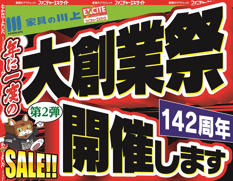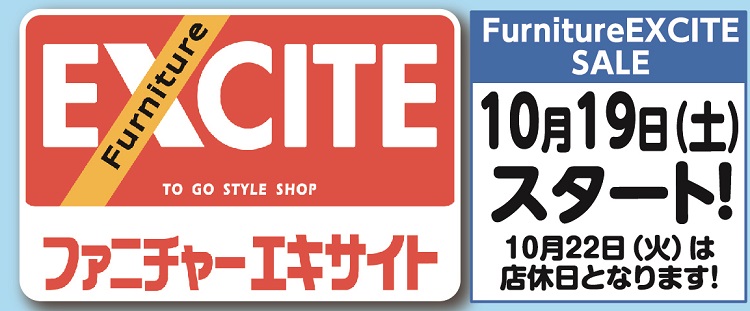 2024.10.17 ファニチャーエキサイト!年に1度の『大創業祭!』第2弾!(2024年10月19日(土)あさ10時30分スタート!) 営業時間が変更となります! 10:30~19:00 よろしくお願いします。