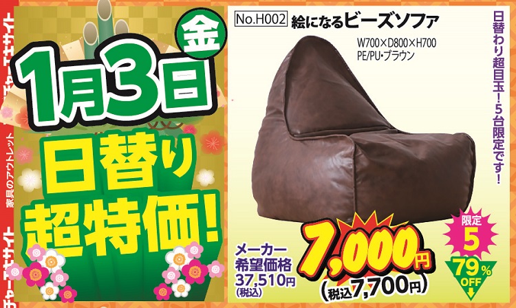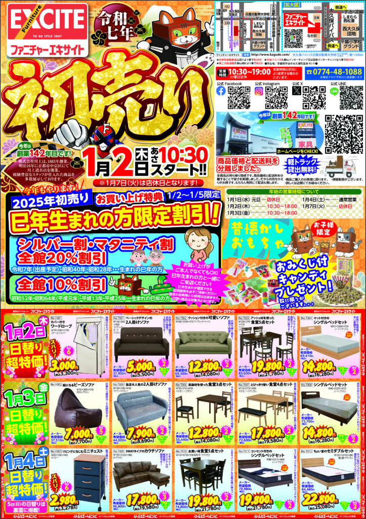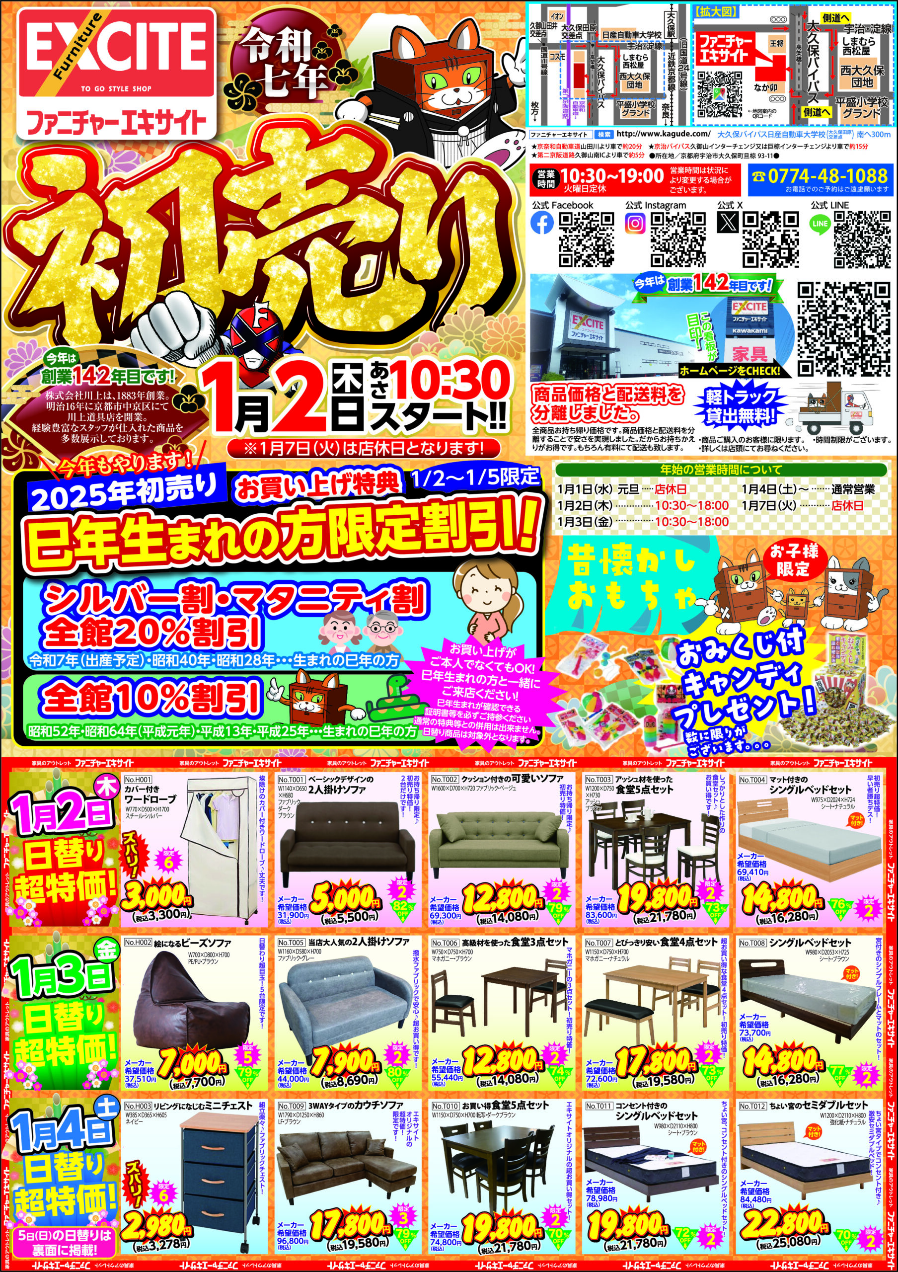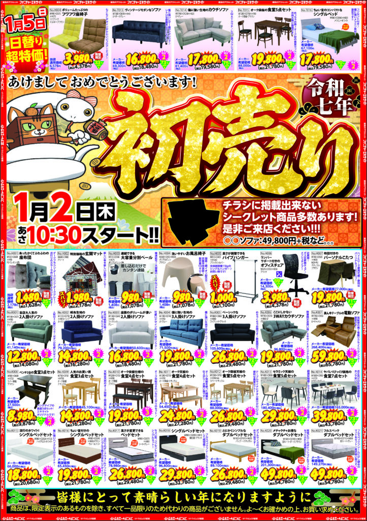 ファニチャーエキサイト!令和七年!初売り!(2025年1月2日(木)あさ10時30分スタート!)