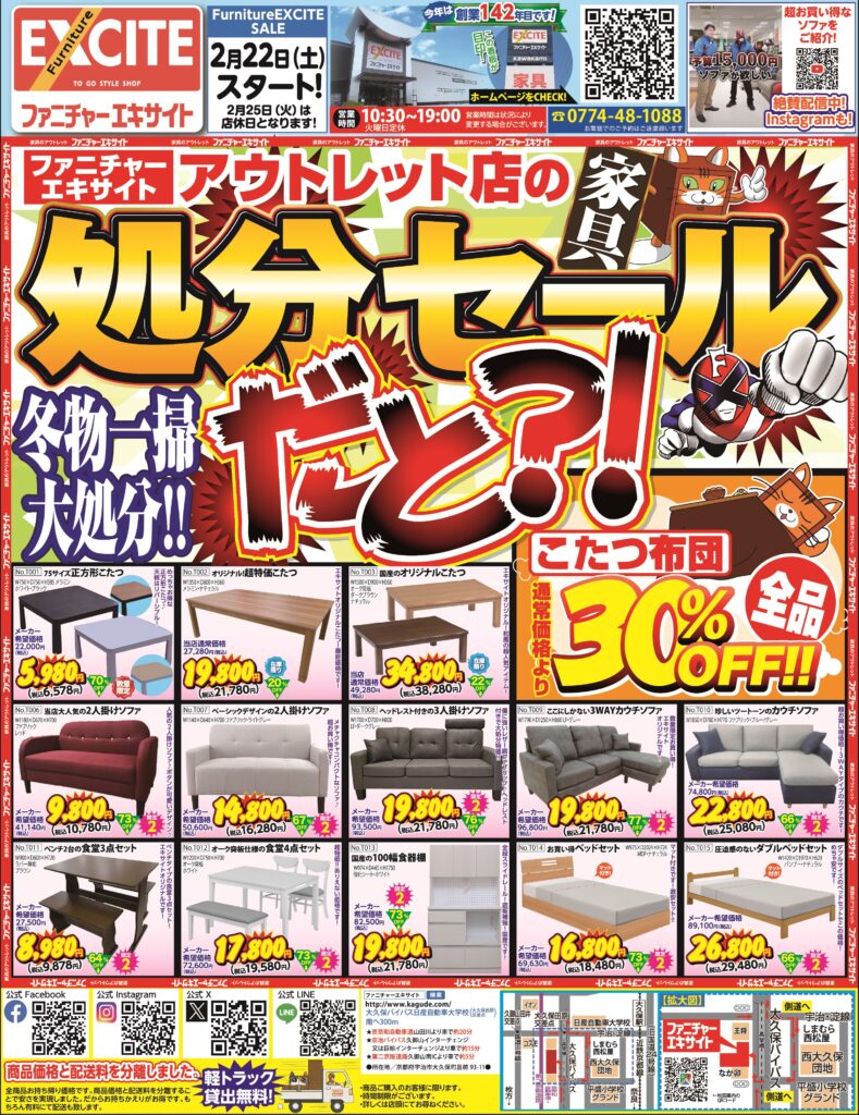 2025.02.10 ファニチャーエキサイト!冬物一掃大処分!家具処分セールだと?!(2025年2月22日(土)あさ10時30分スタート!) 2025年2月22日(土)スタート! 10:30~19:00