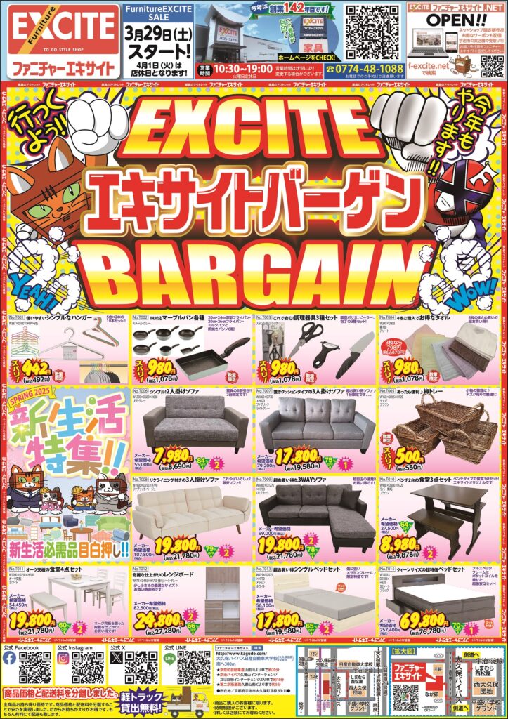 2025.03.24 ファニチャーエキサイト!EXCITE BARGAIN!エキサイト バーゲン!(2025年3月29日(土)あさ10時30分スタート!) 2025年3月29日(土)スタート! 10:30~19:00