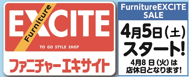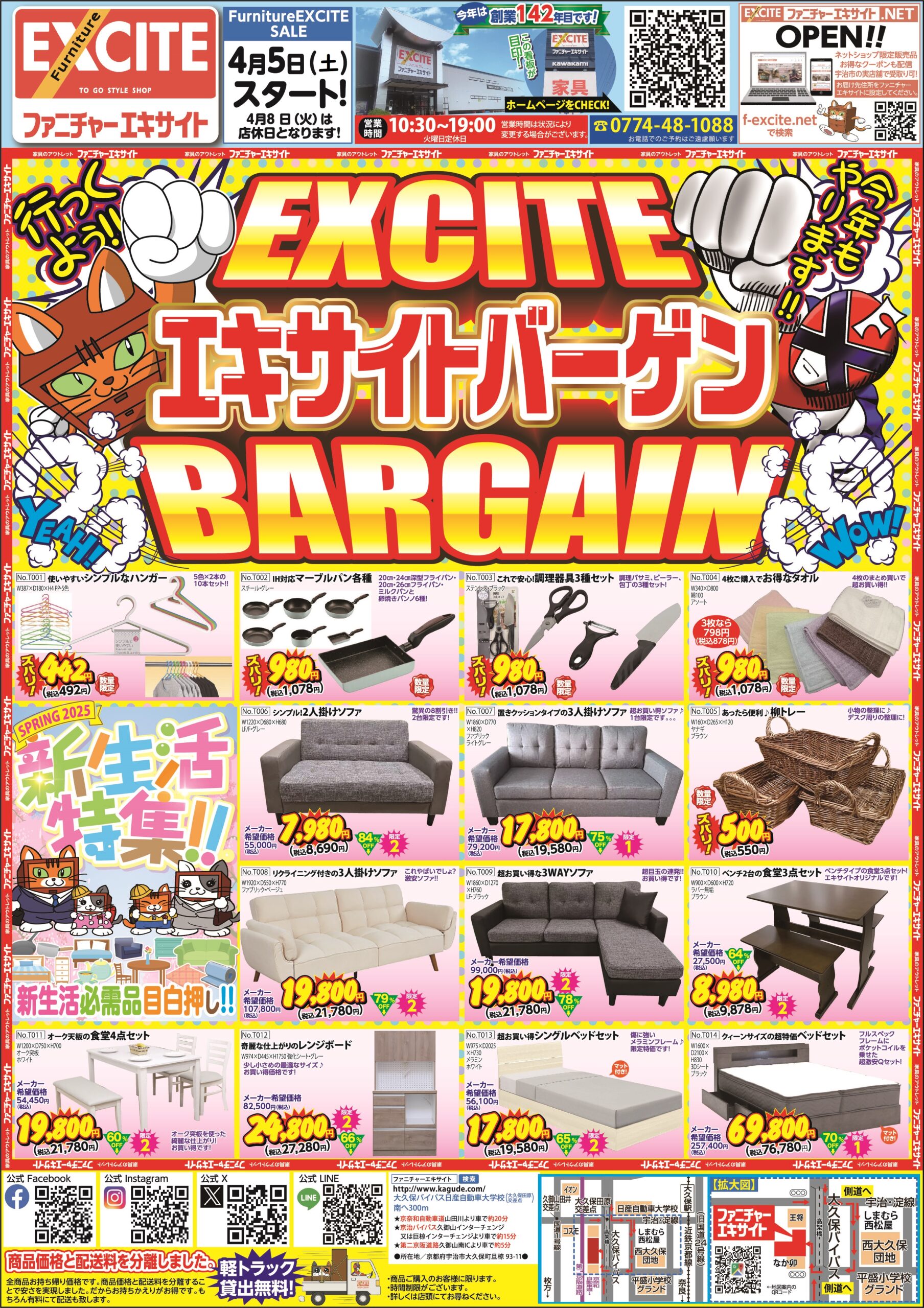 2025.03.31 ファニチャーエキサイト!EXCITE BARGAIN!エキサイト バーゲン!(2025年4月5日(土)あさ10時30分スタート!) 2025年4月5日(土)スタート! 10:30~19:00