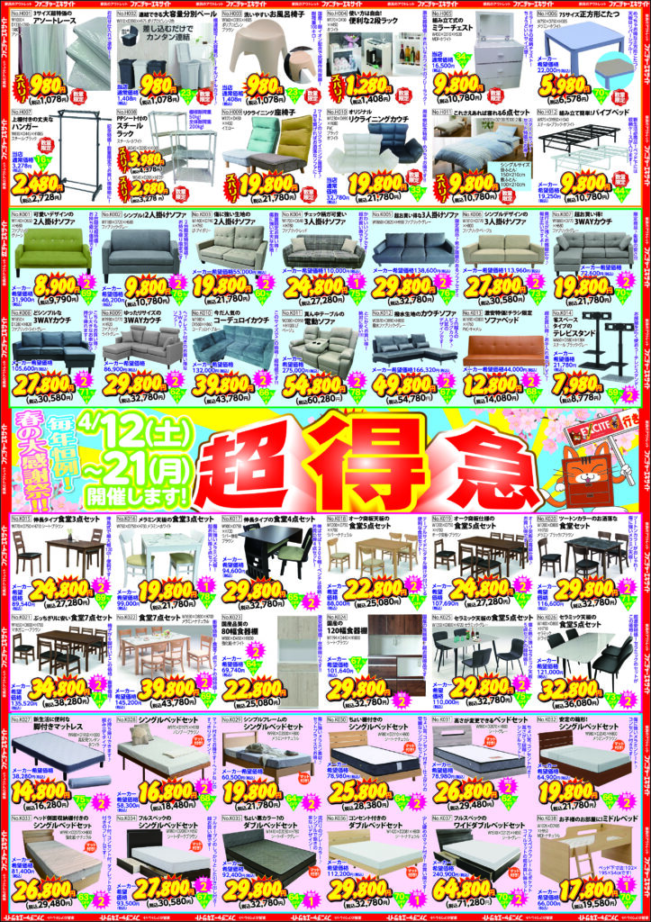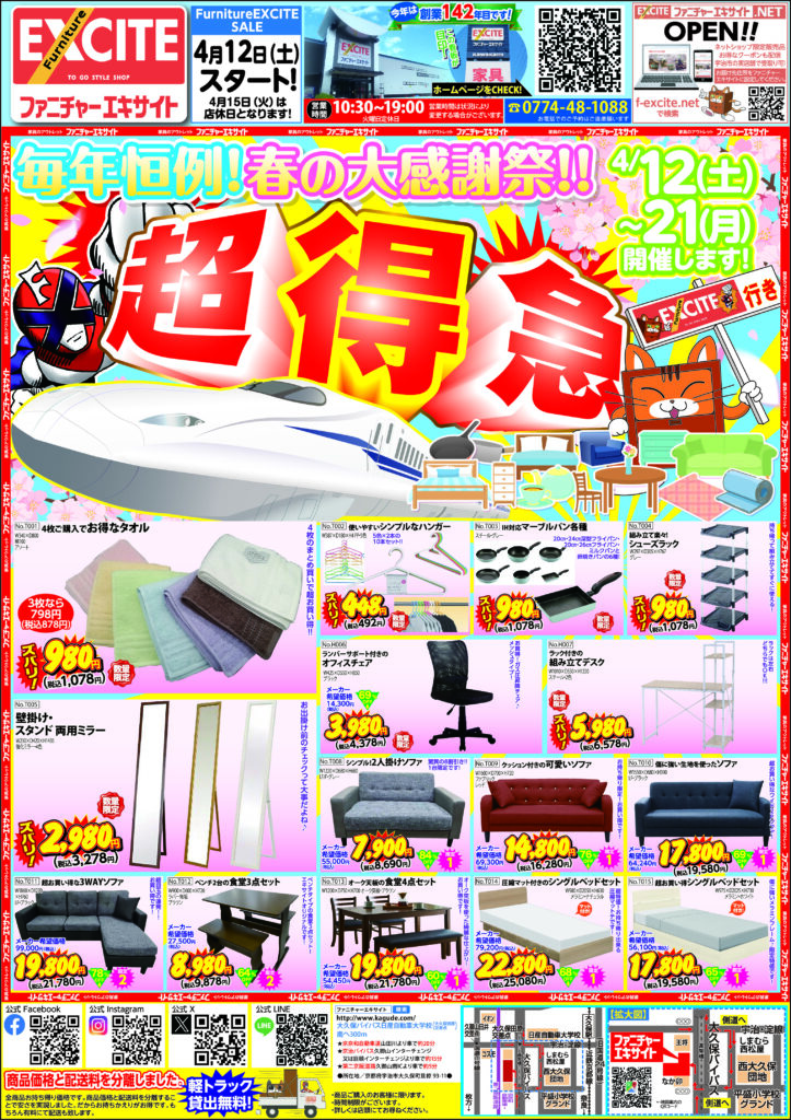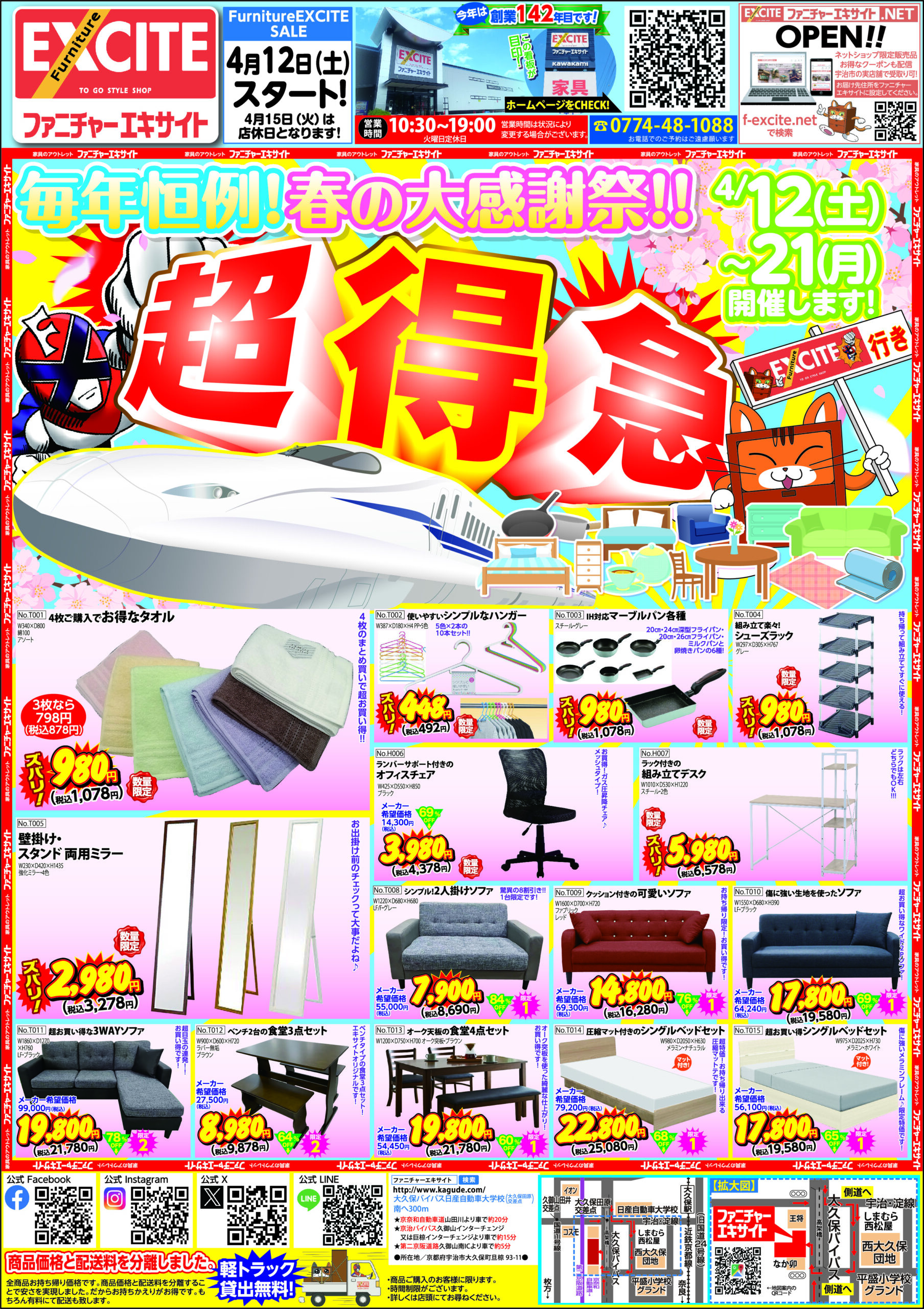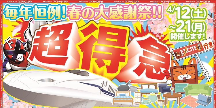 ファニチャーエキサイト!毎年恒例!春の大感謝祭!超得急!(2025年4月12日(土)あさ10時30分スタート!)