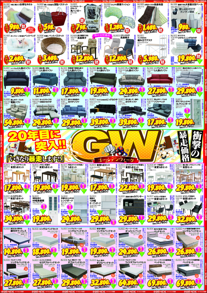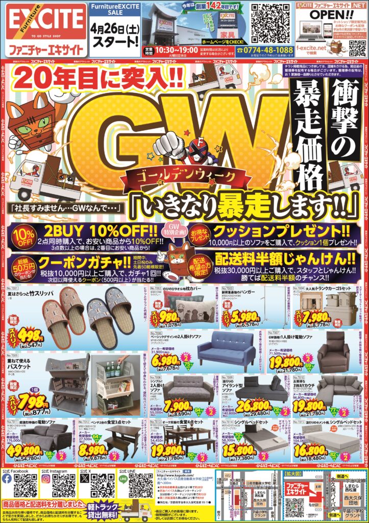 ファニチャーエキサイト!20年目に突入!GW(ゴールデンウィーク)セール!(2025年4月26日(土)あさ10時30分スタート!)
