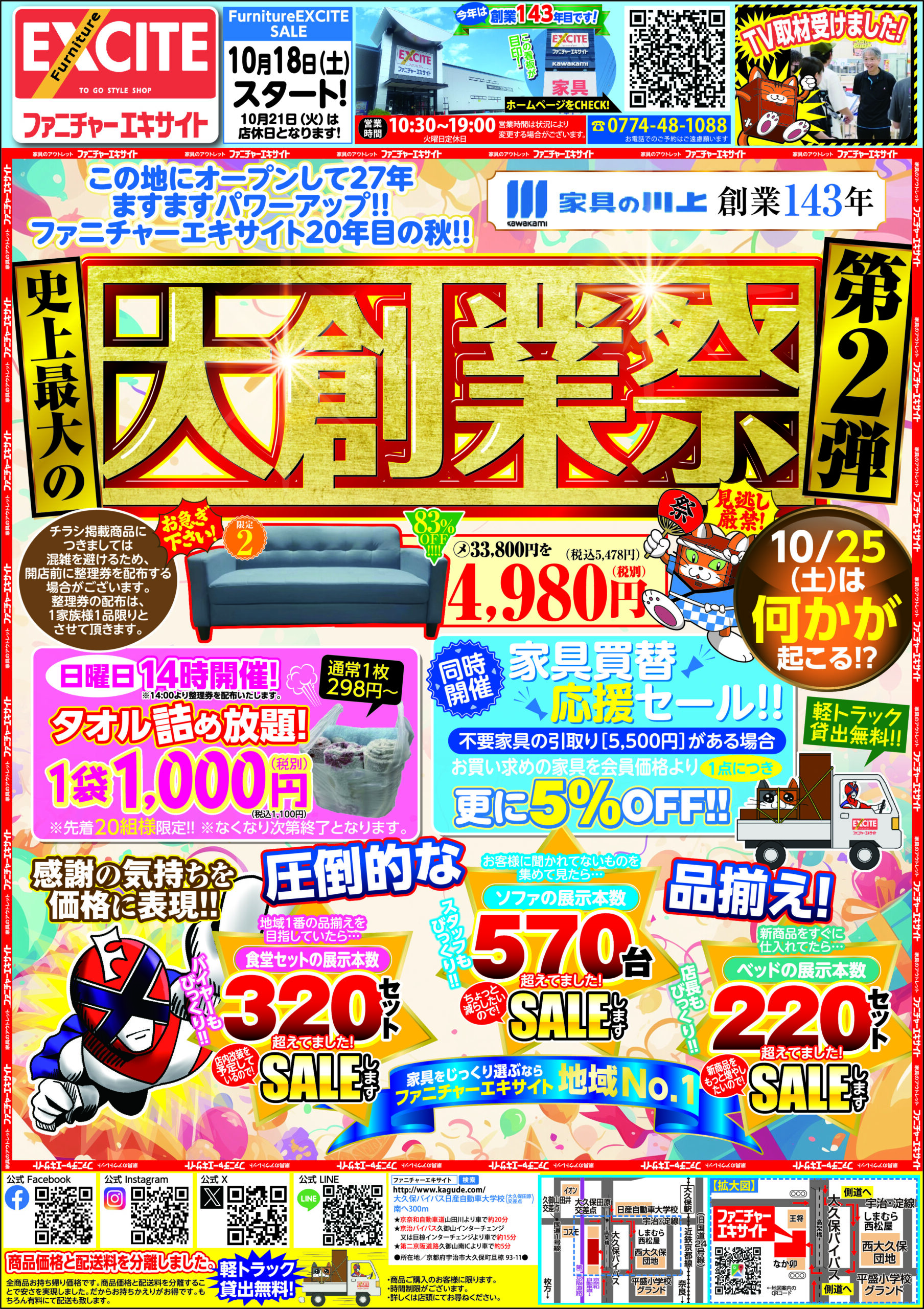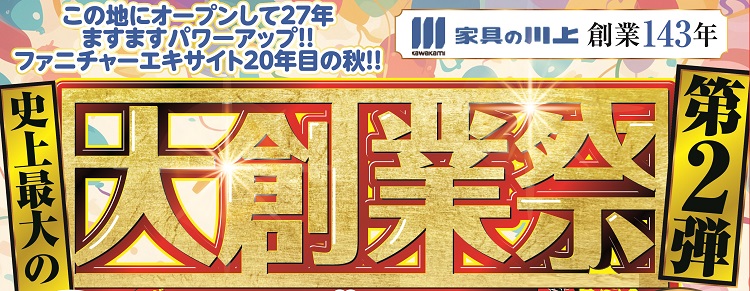 2025.10.16 ファニチャーエキサイト!創業143年!史上最大の大創業祭!第2弾!(2025年10月18日(土)あさ10時30分スタート!) 2025年10月18日(土)スタート! 10:30~19:00 ネットショップはこちらをタップ ↓ ↓ ↓
