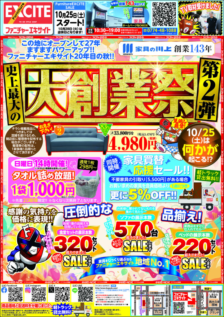 ファニチャーエキサイト!創業143年!史上最大の大創業祭!第2弾!(2025年10月25日(土)あさ10時30分スタート!)
