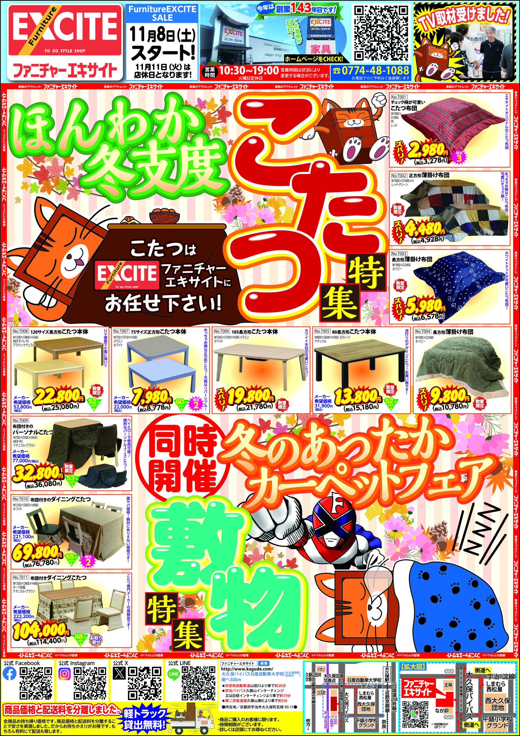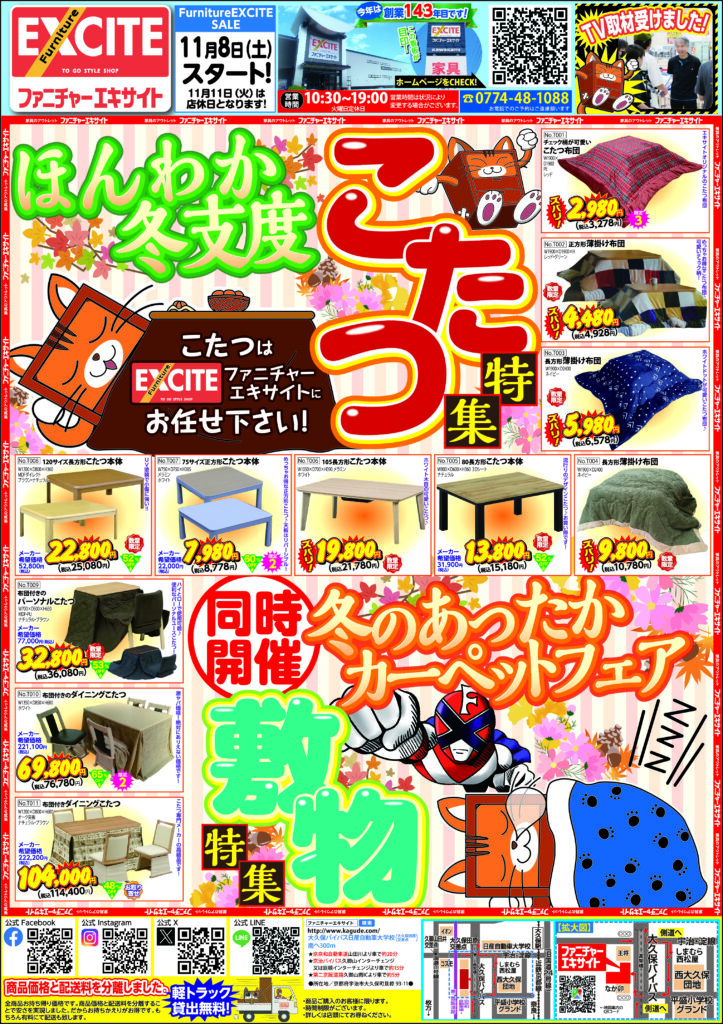 ファニチャーエキサイト!ほんわか冬支度!こたつ特集!(2025年11月8日(土)あさ10時30分スタート!)
