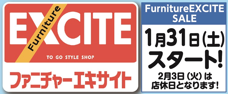 2026.01.28 ファニチャーエキサイト!冬物一掃!空っぽ大放出セール!(2026年1月31日(土)あさ10時30分スタート!) 2026年1月31日(土)スタート! 10:30~19:00 ネットショップはこちらをタップ ↓ ↓ ↓