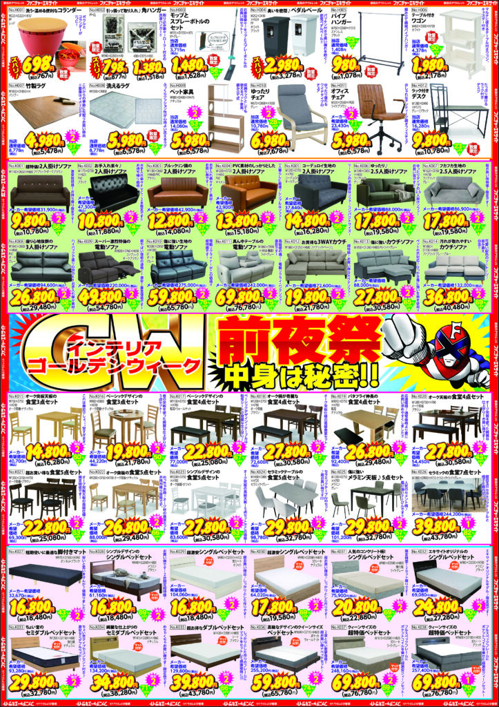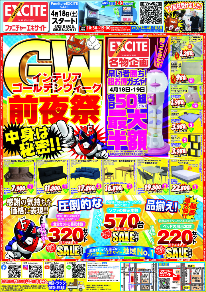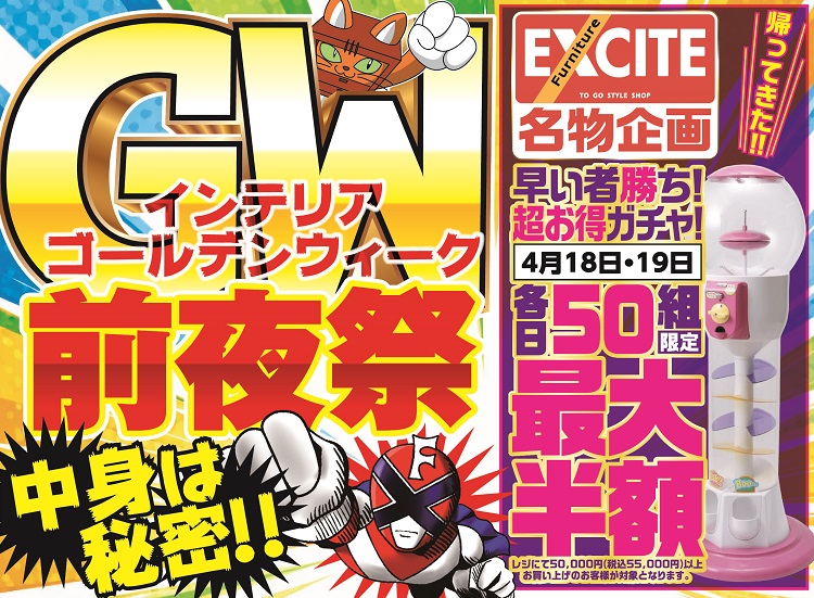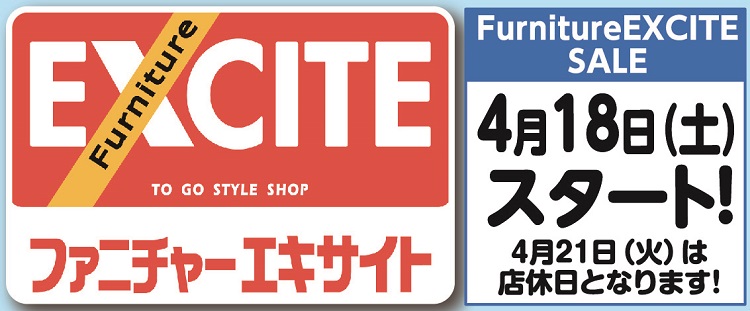 2026.04.15 ファニチャーエキサイト!ゴールデンウィーク!前夜祭!(2026年4月18日(土)あさ10時30分スタート!) 2026年4月18日(土)スタート! 10:30~19:00 ネットショップはこちらをタップ ↓ ↓ ↓