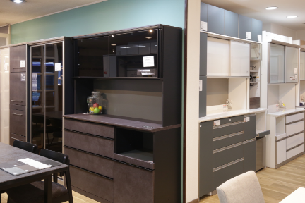 快適な食事や団らんが出来る空間を作る、ソファやダイニングセット、食器棚を中心としたコーナーです。