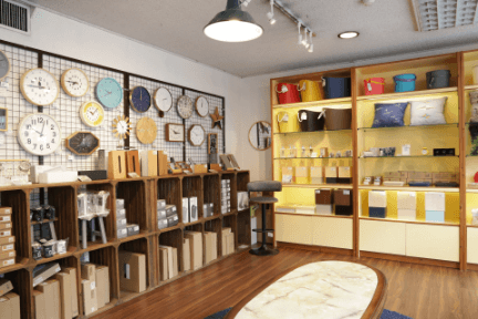 お部屋をワンランク上の暮らしにするためのプラス1アイテムとして、時計やグラスなどかわいい雑貨の売り場です。