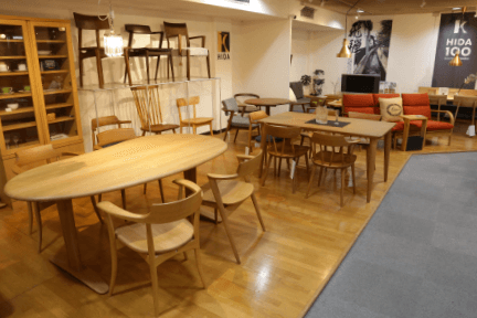 道具とは役にたたなくなったらポイっと簡単に捨てられるモノ。いわゆる使い捨てというやつです。しかし、家具は使えば使うほど愛着がわき手放せなくなるもの、または手放さなければならなくなった時に悲しく感じさせるモノ、だと思います。その違いは一言では言い表せませんが、やはり作り手の思いが入っていない量産家具や売上げ重視の家具が前者であり、後者は作り手が使う人を思いやって作られた家具であると思います。ですので、我々、家具の川上 夷川本店の使命は、「愛着をもって使っていただける本物の家具」とお客様を出会わせることにあると考えています。
