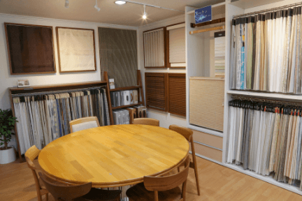 オーダーカーテンやロールスクリーンやブラインドなどお部屋の窓辺を美しく飾るコーディネートコーナーです。