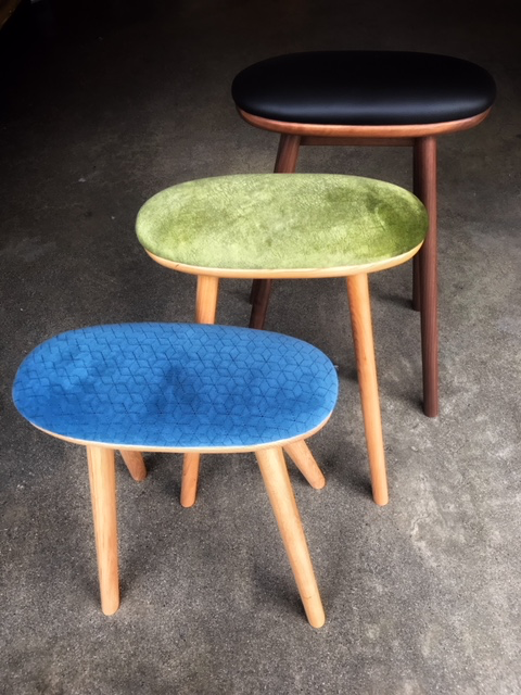 楕円形の座面で、ふつうのスツールよりも奥行きが浅いのが特徴です。