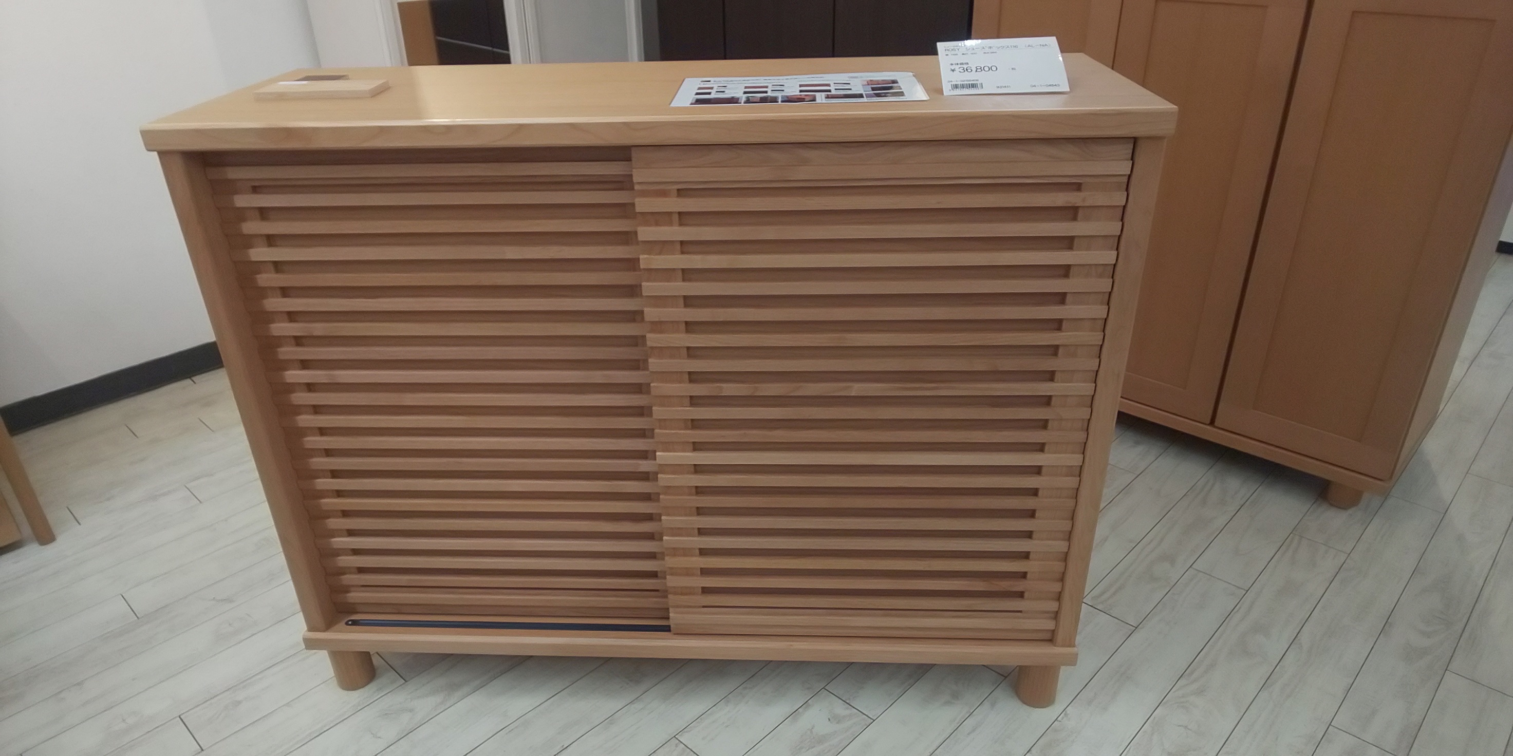 2019.04.15 mon シューズボックス 超人気シューズボックス ROSY(ロージー) ¥36,800 (税込) 和洋にとらわれないデザイン性、玄関になじむ シューズボックスです。 他にダーク色も選れべます。 サイズは他にW80.5cmのコンパクトサイズと W152.5cmの大型サイズが選べます。 W116.5cm D40cm H88.8cm アイテムコード:041-04543 2019/04/15 掲載