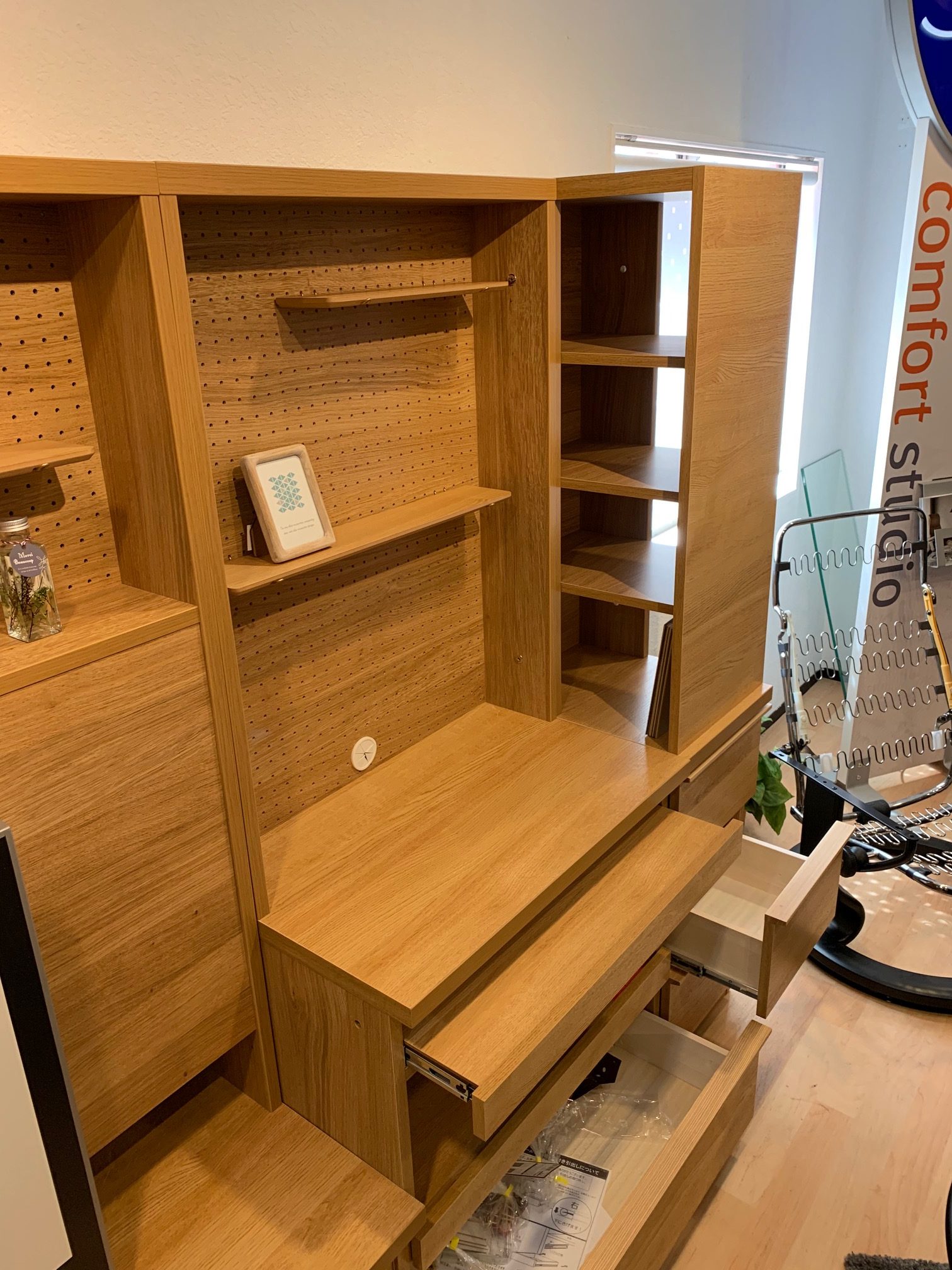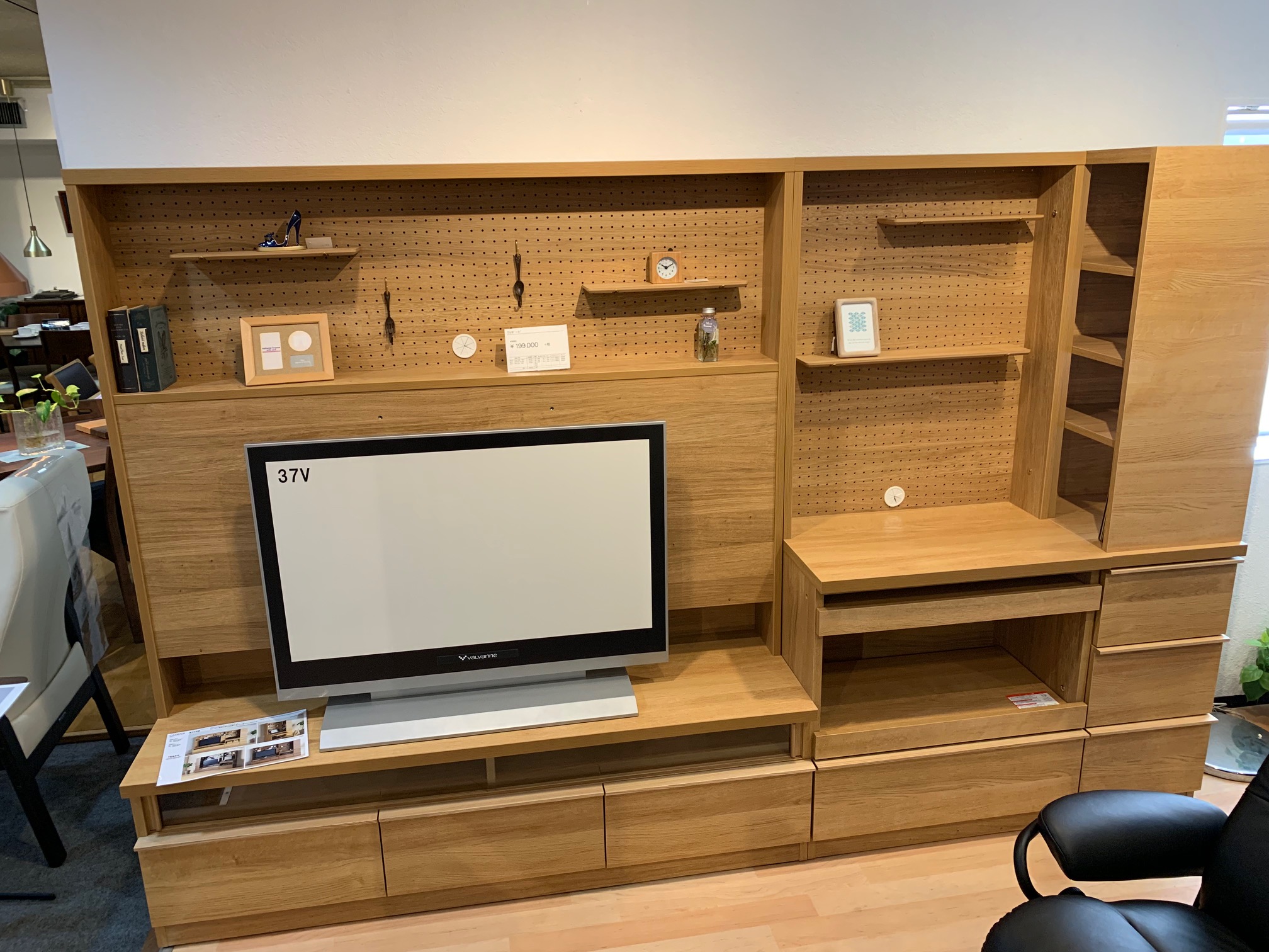 魅せる壁面リビングボードです。またスライドテーブルにキーボードを置けば