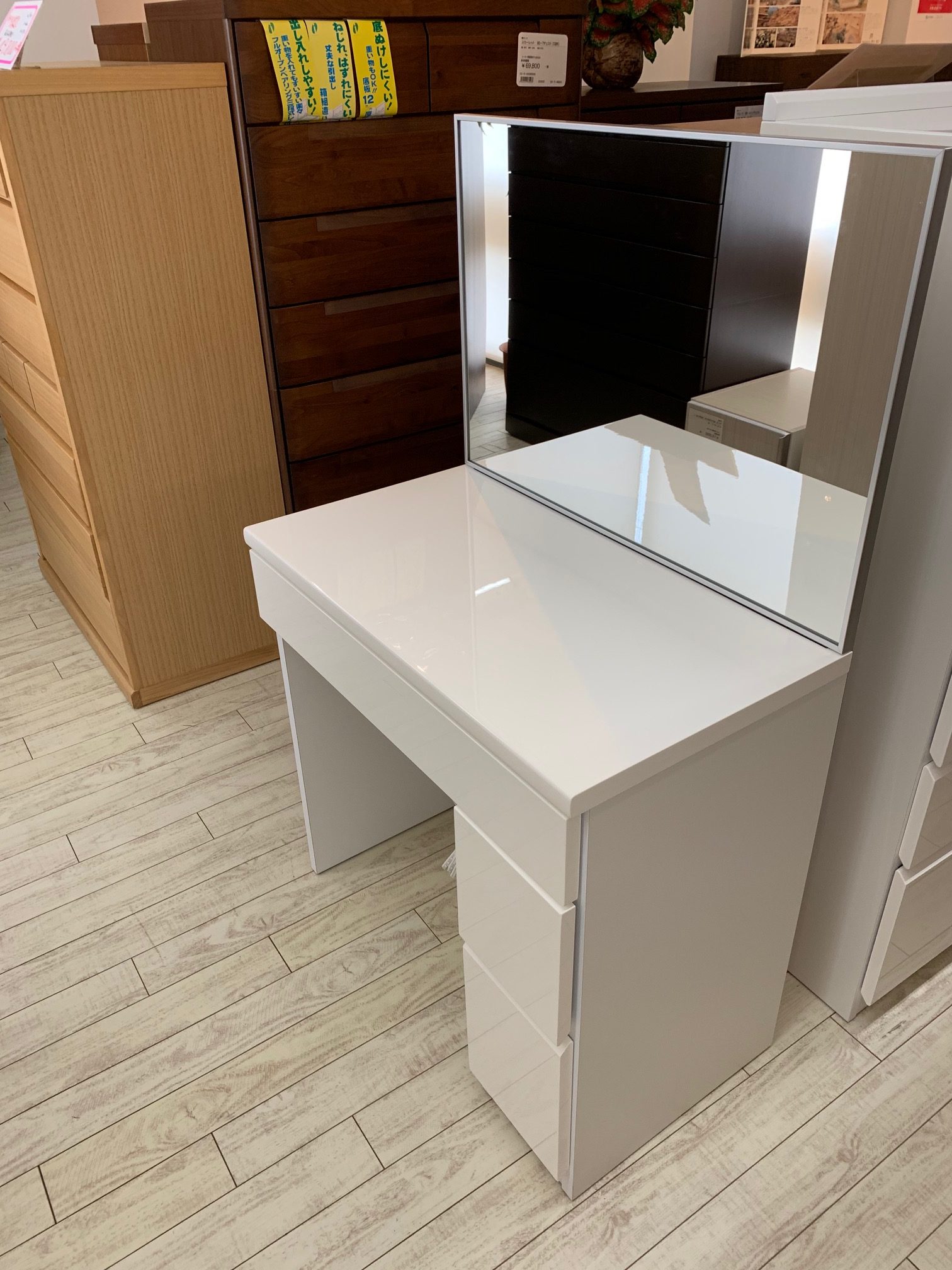 ホワイト鏡面のドレッサーです。キズに強く、お手入れも簡単。