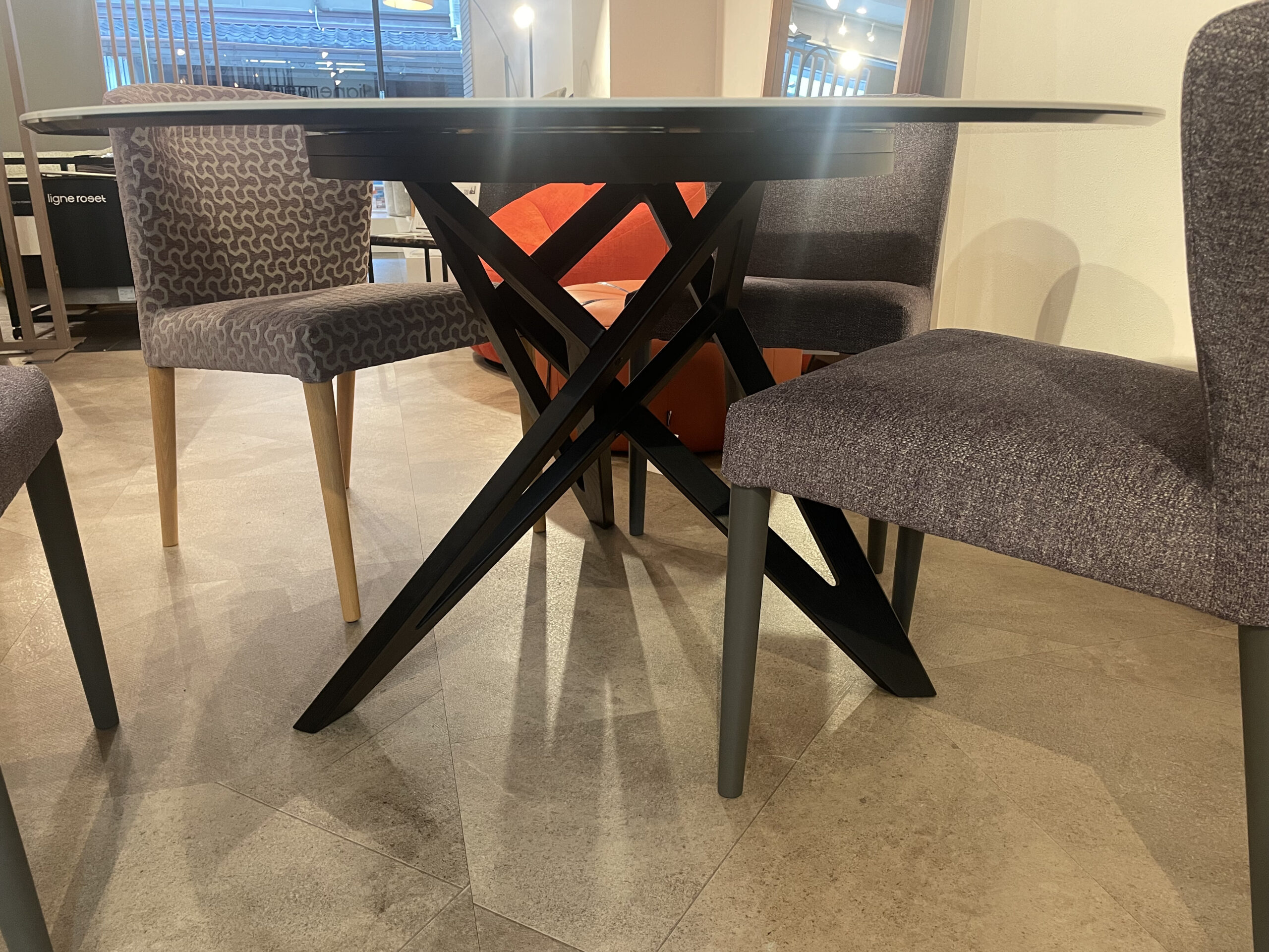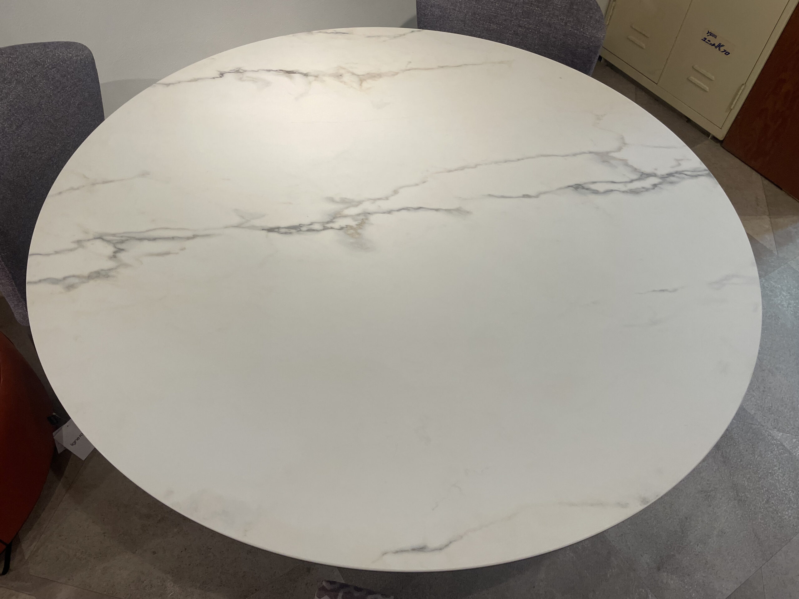 マーブル模様のセラミック天板が静かに浮かぶ。