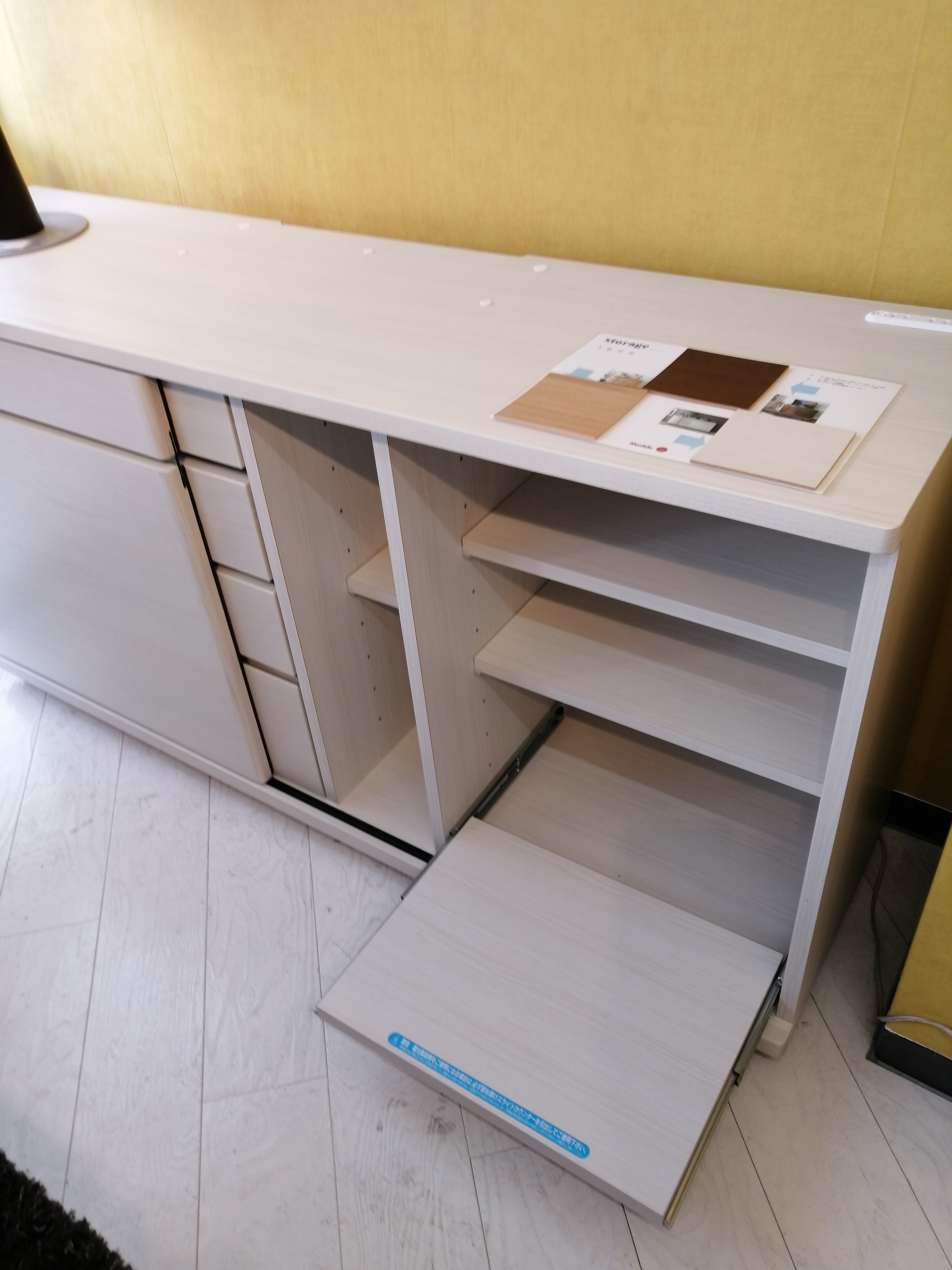 天板にはコンセント付きなので、TVやスタンド照明を置けます。
