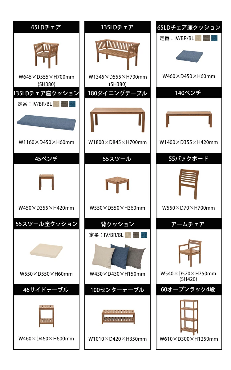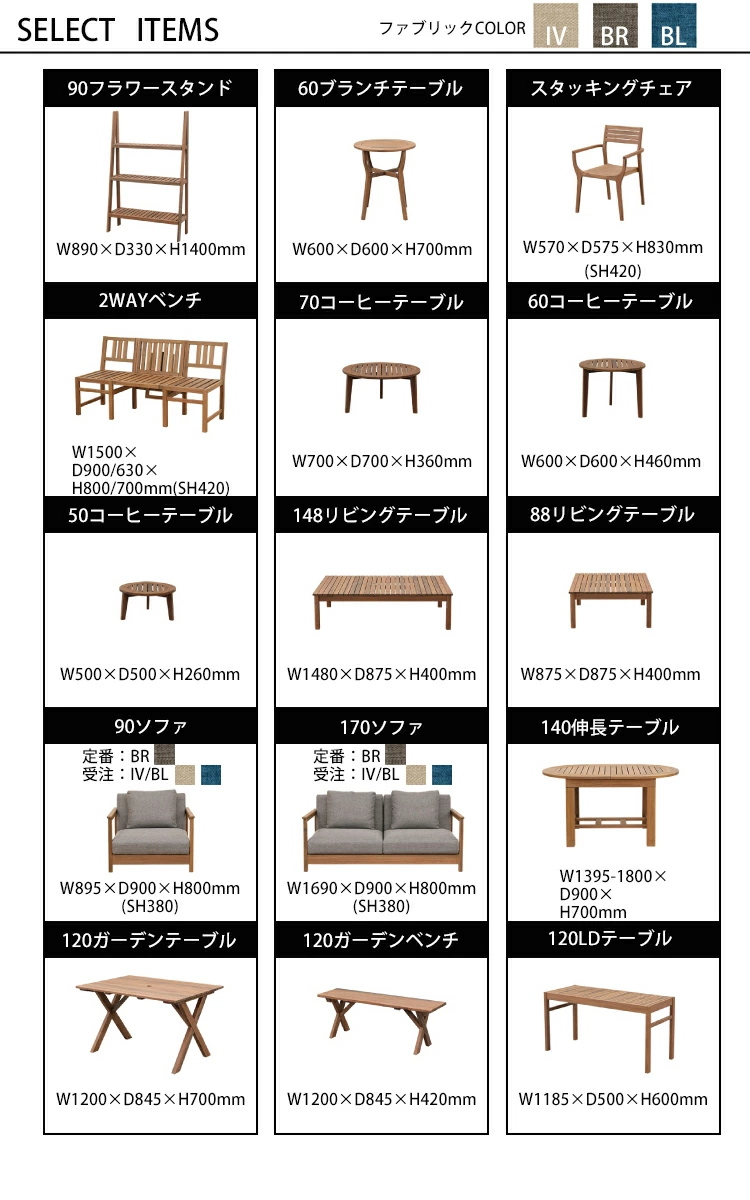 展示している2WAYベンチ以外も多くのシリーズ商品アイテムがございます。