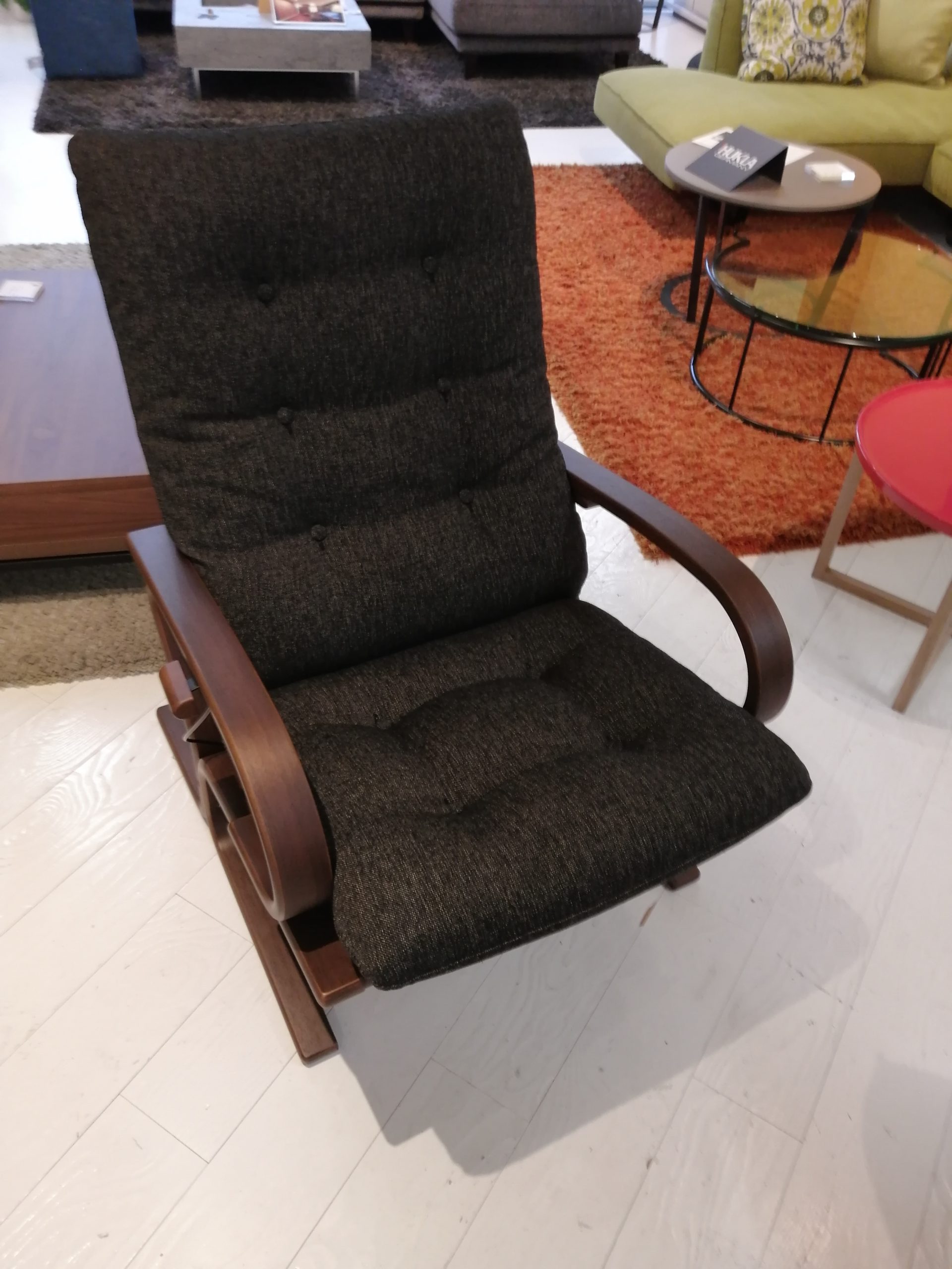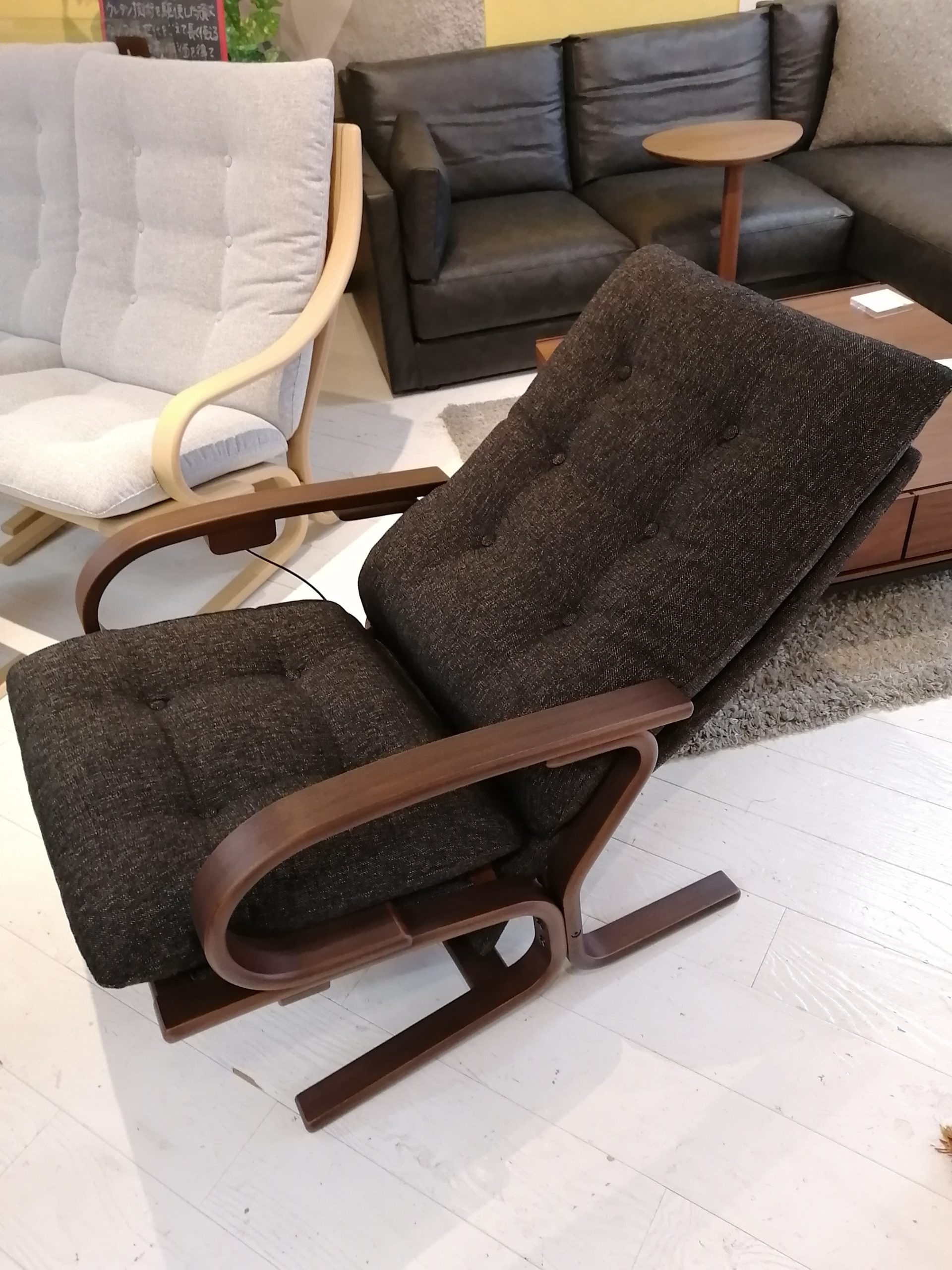 冨士ファニチアの特徴が一番良く 出ている成型合板(曲げ木加工)をフレームに使ったソファ。
